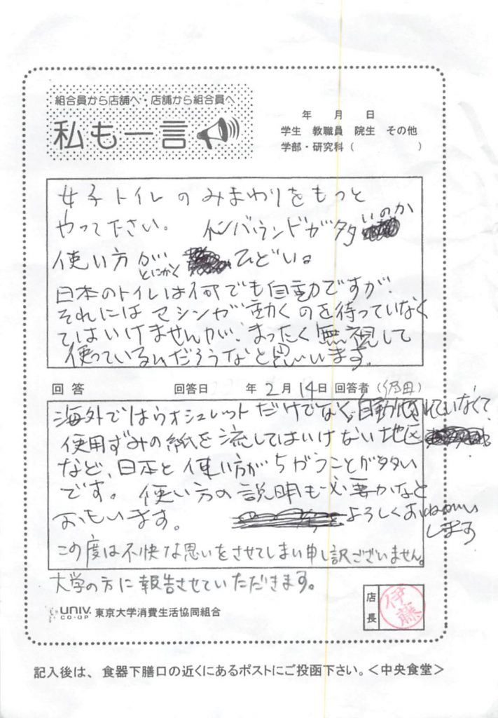 女子トイレのみまわりをもっとやって・・・