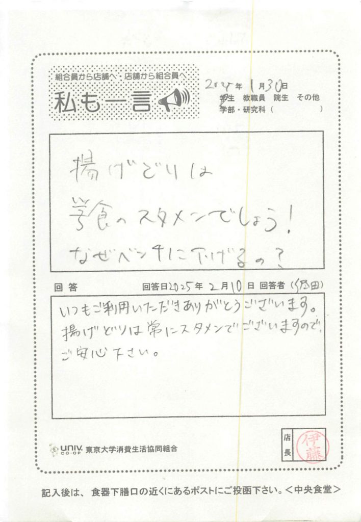 揚げどりは学食のスタメンでしょう!・・・