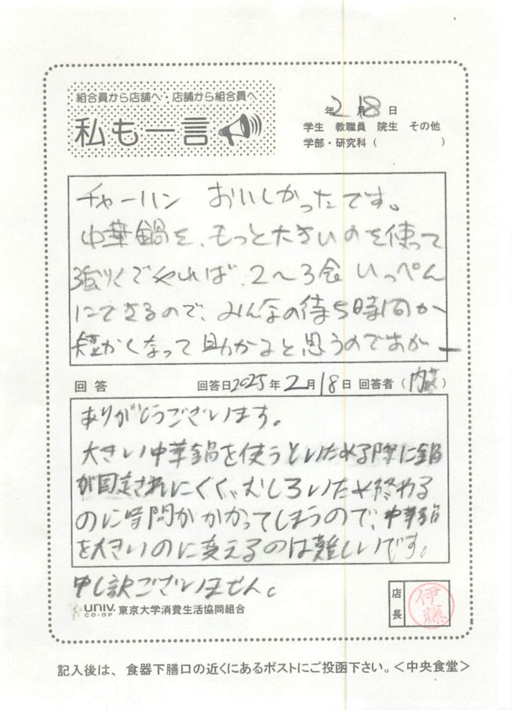 中華鍋を、もっと大きいのを使って強火でやれば・・・
