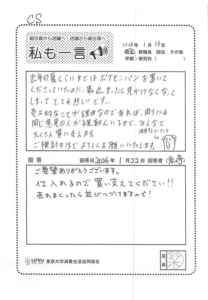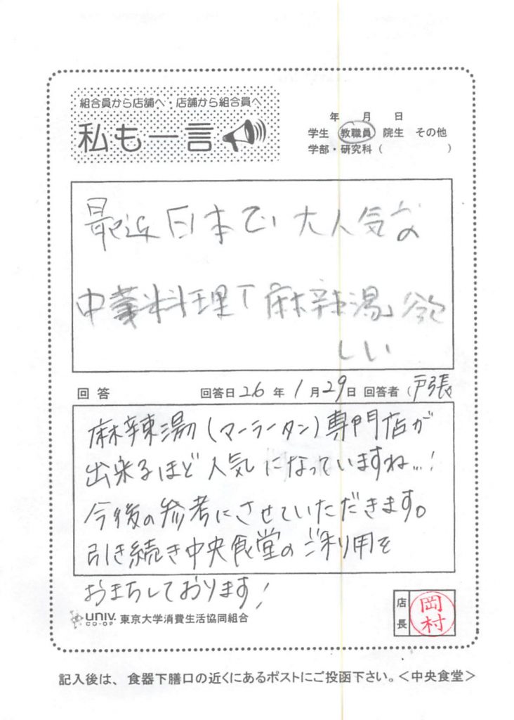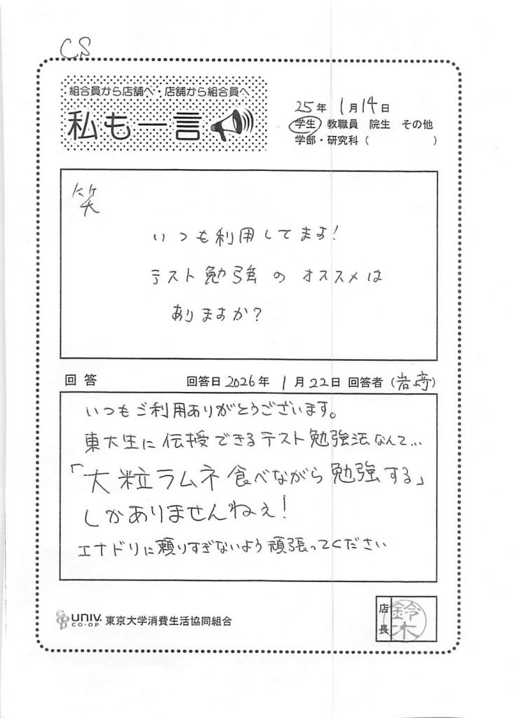 東大生協について