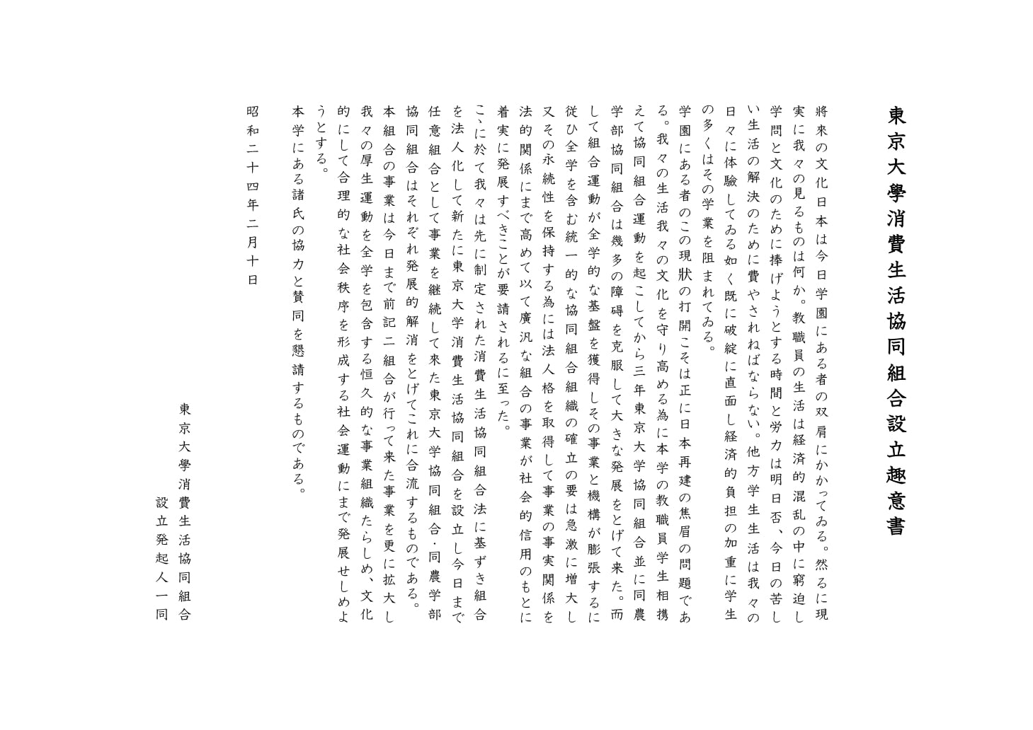 | 設立 | 1946年6月創立、1949年5月「消費生活協同組合法」にもとづき法人格取得 |