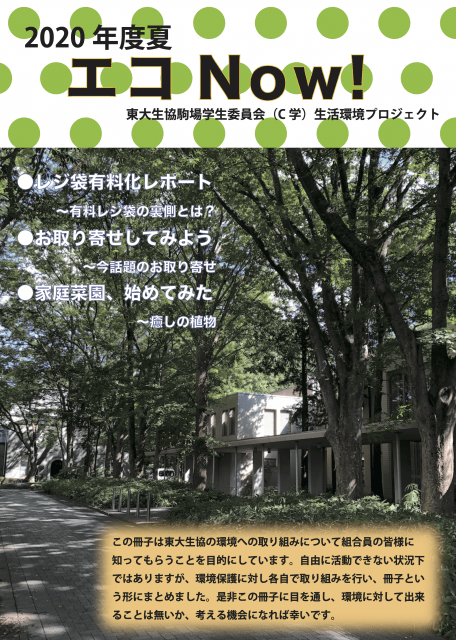 東大生協は、大学での暮らしを円滑にする活動の他にも、さまざまな活動を行っています。その一つが生活環境保護活動です。