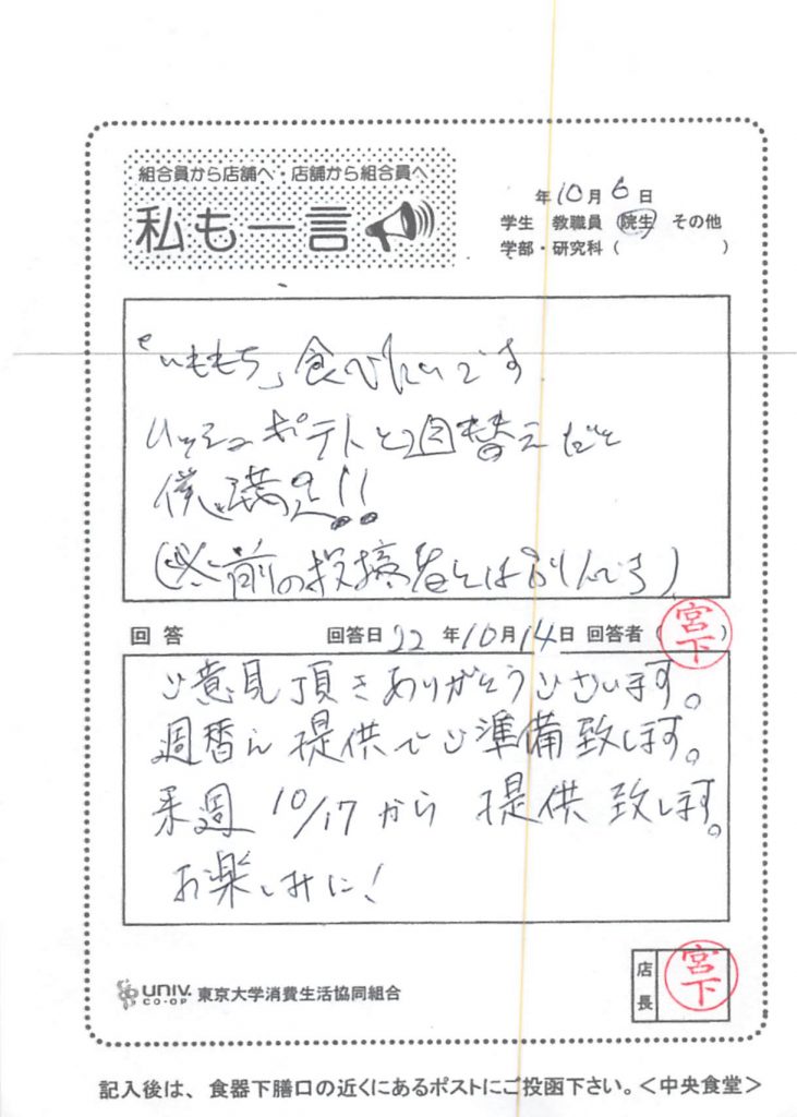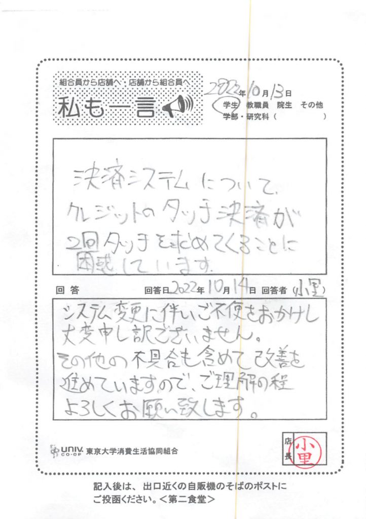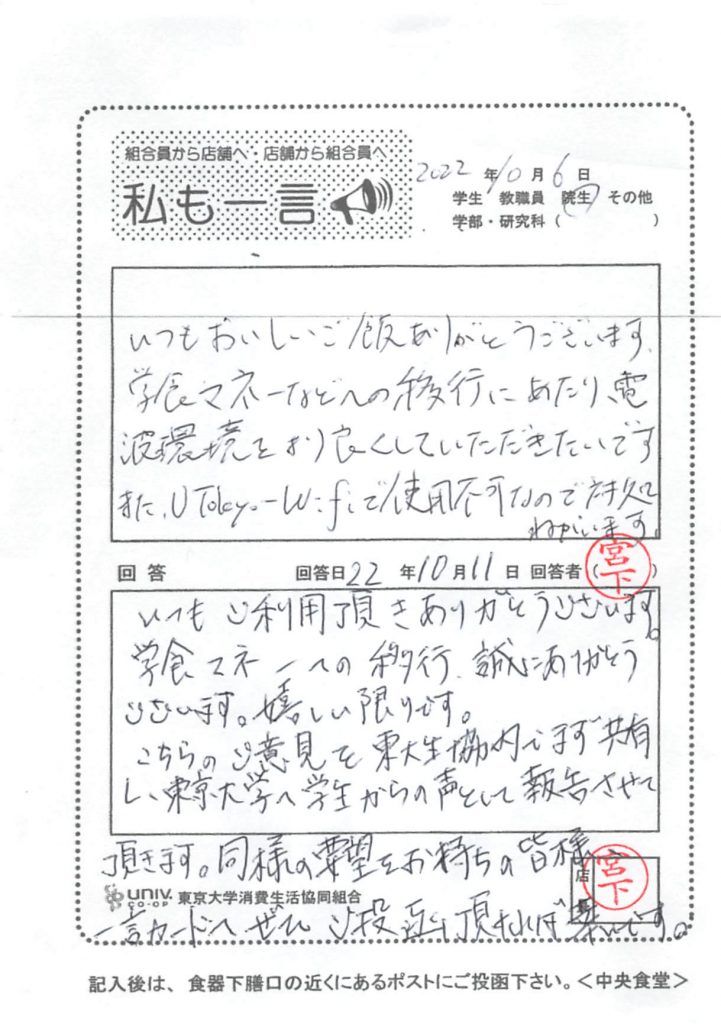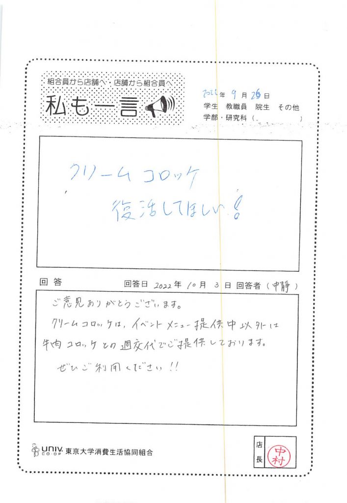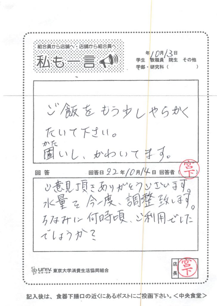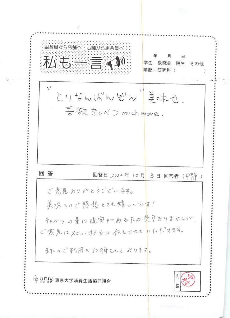 Regarding nutritional value, we apologize for the inconvenience caused to everyone due to the large-scale system change of the National University Co-op Group. The University of Tokyo Co-op has submitted a request for improvement. Please wait a moment now. Thank you for your continued support.