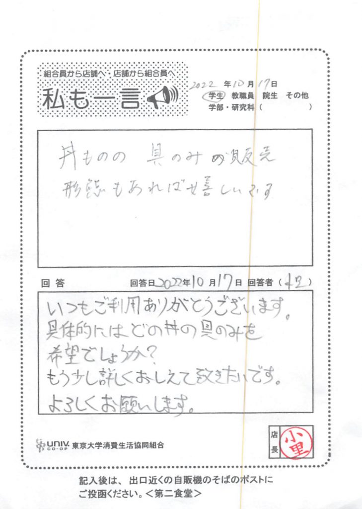 I apologize for the difficulty in understanding the notation regarding katsudon and oyakodon. I was still on vacation. POP will be installed in the menu case.