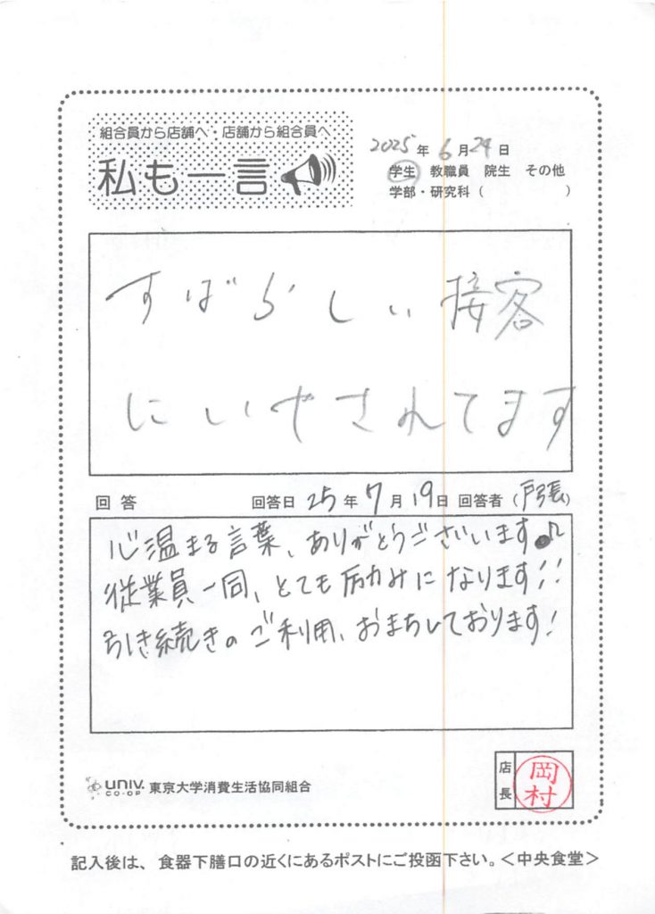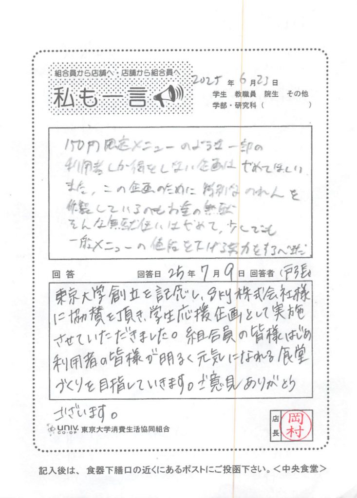 Central cafeteria 20257/31 Plans that only benefit a few customers, such as the 150 yen limited menu... Tweet