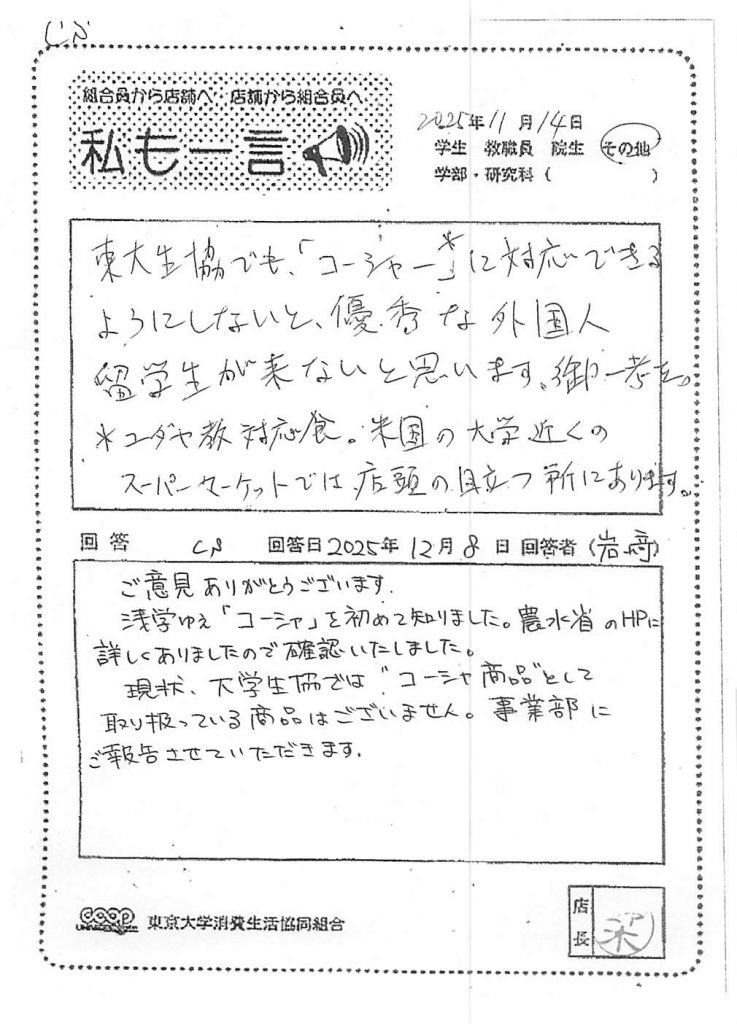 Komaba Purchasing 202512/16 The University of Tokyo Co-op needs to start offering kosher food as well... Tweet Word Card Collection list