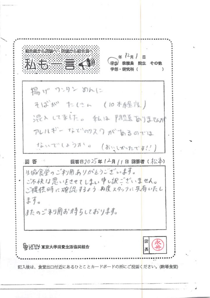 Komaba dining room 202512/16 Deep fried wonton noodles with lots of buckwheat mixed in... Tweet Word Card Collection list