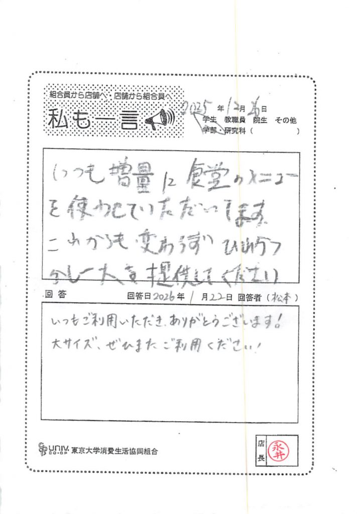 Komaba dining room 20261/28 We will continue to offer the large pork cutlet curry.. Tweet Word Card Collection list