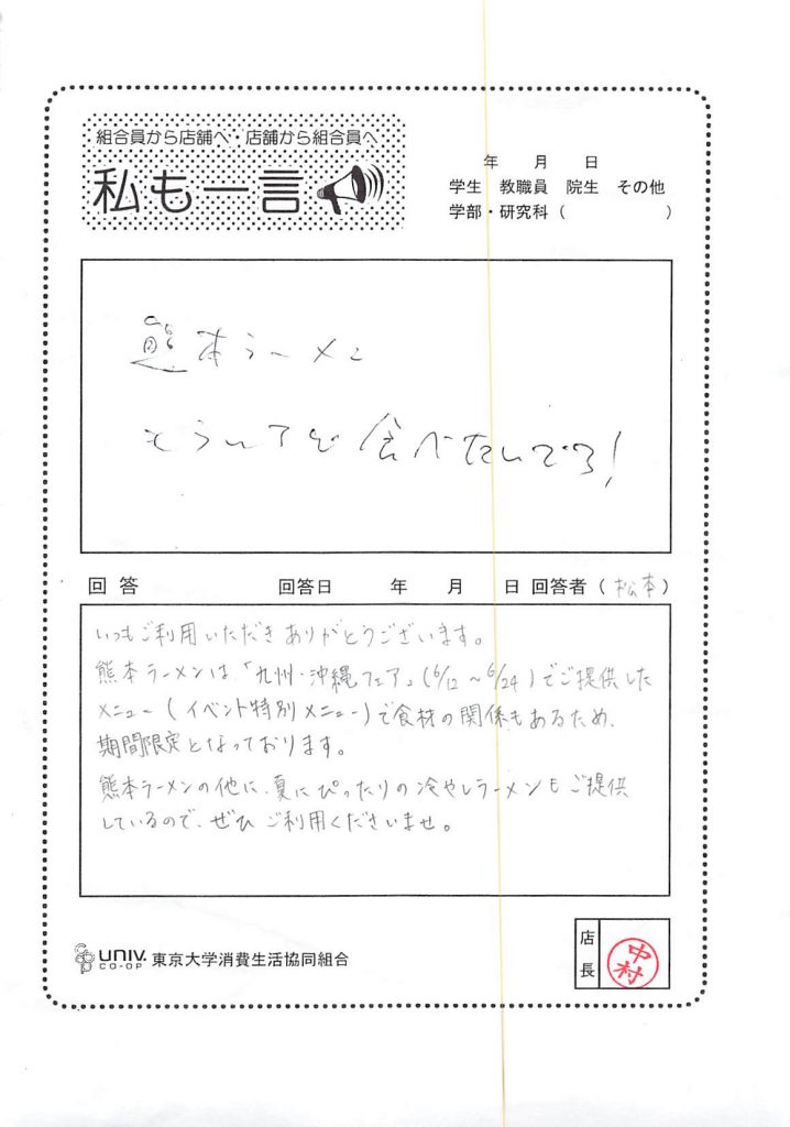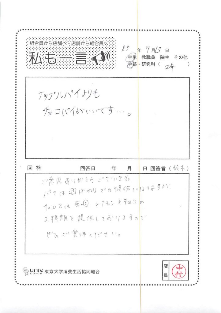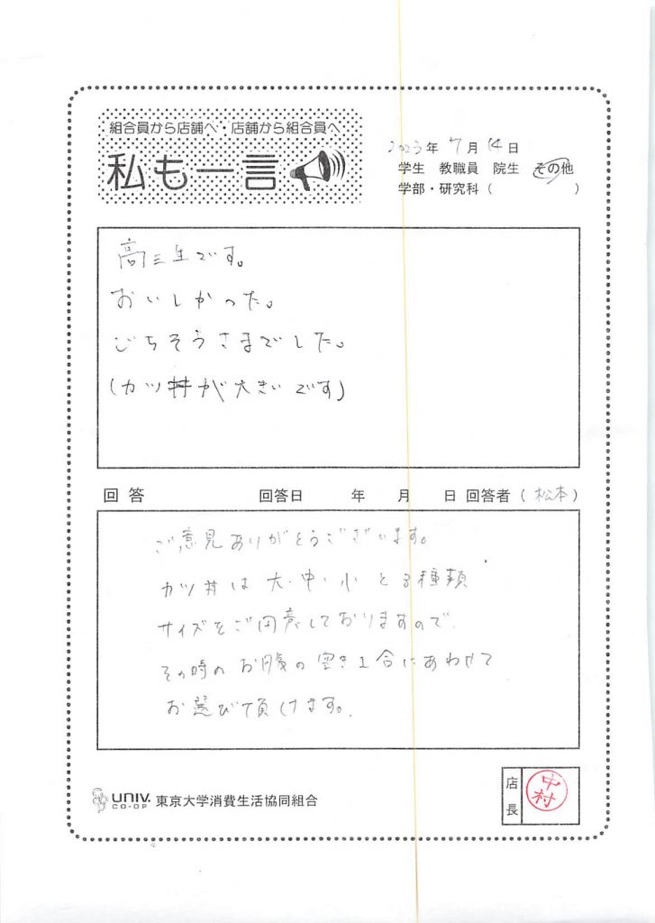 I'm a third year high school student. it was delicious···