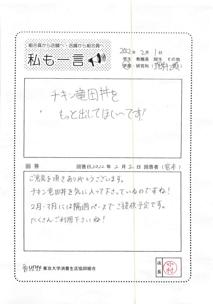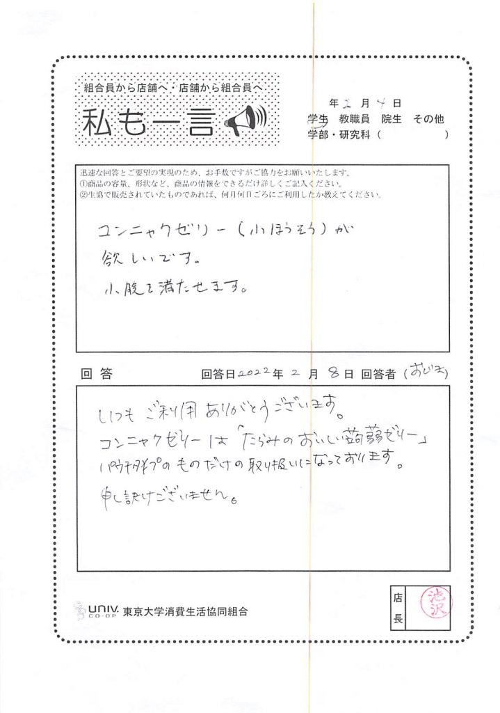 Basically, I think it's very convenient, but I feel like the contents of the cart disappear when I log out. I thought it would be easier to use if there were functions such as "wish list" and "save the contents of the cart".