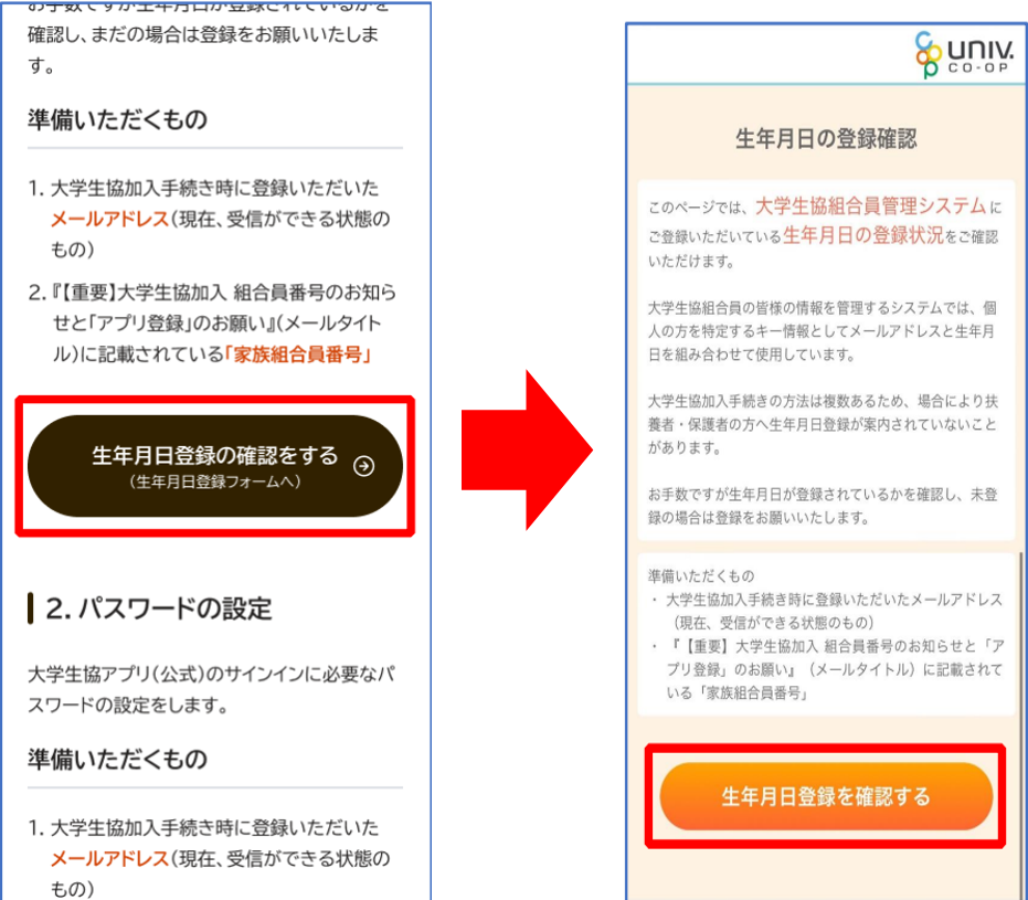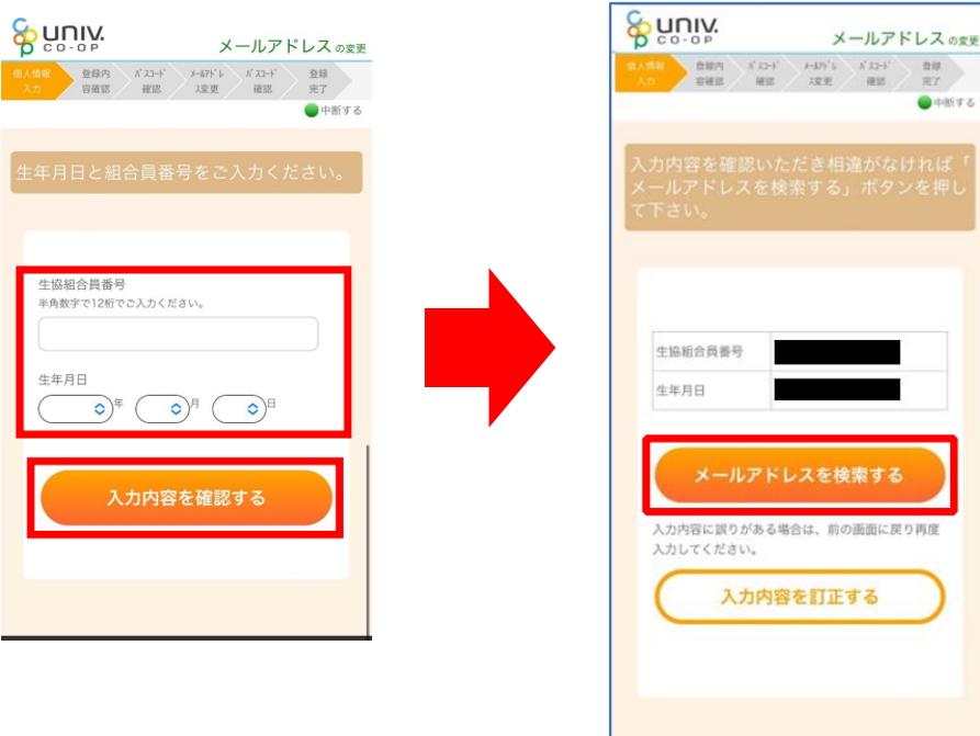 ④「here”, enter your membership number and date of birth, and search for your registered email address.