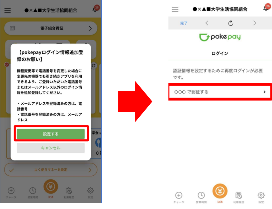 Select "Set" for additional information and authenticate with the authentication code using the method displayed in the app.