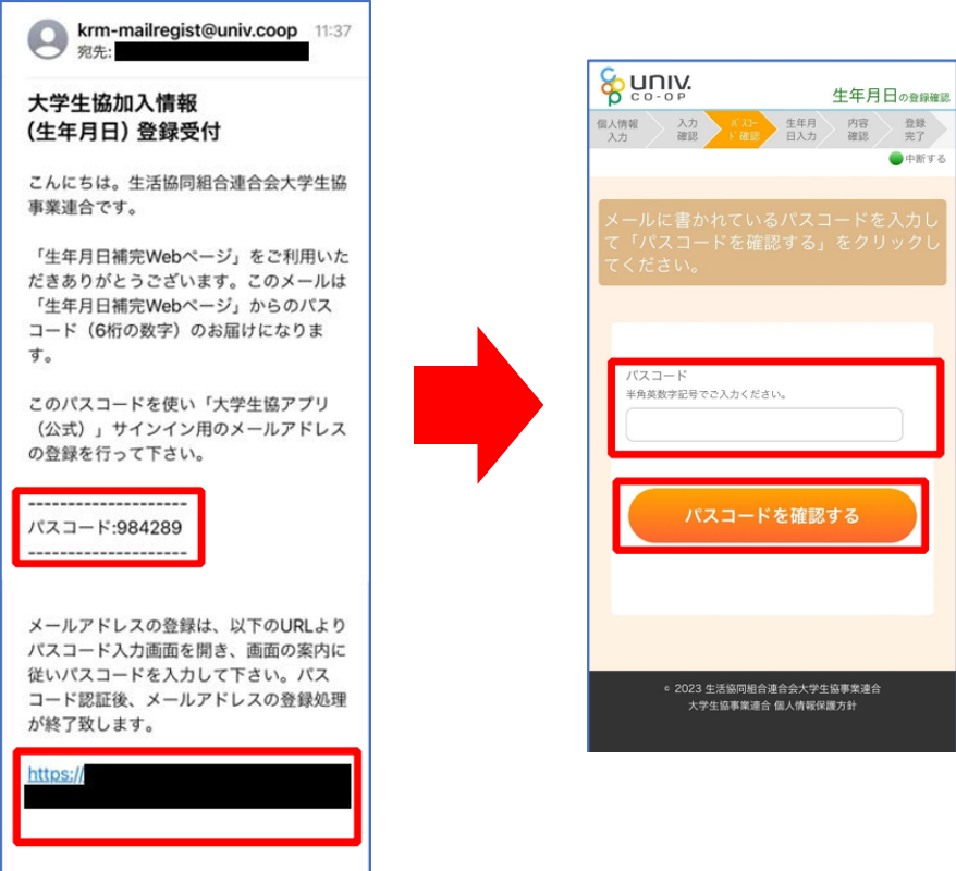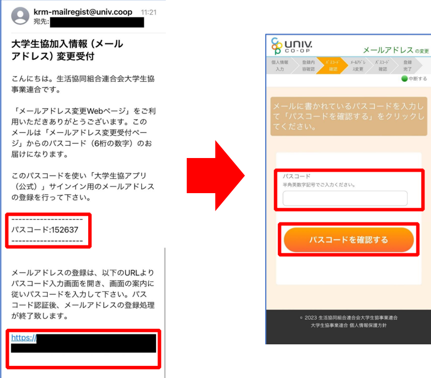 ⑥ Check the sent passcode and move to the passcode entry screen from the URL at the bottom of the email content.