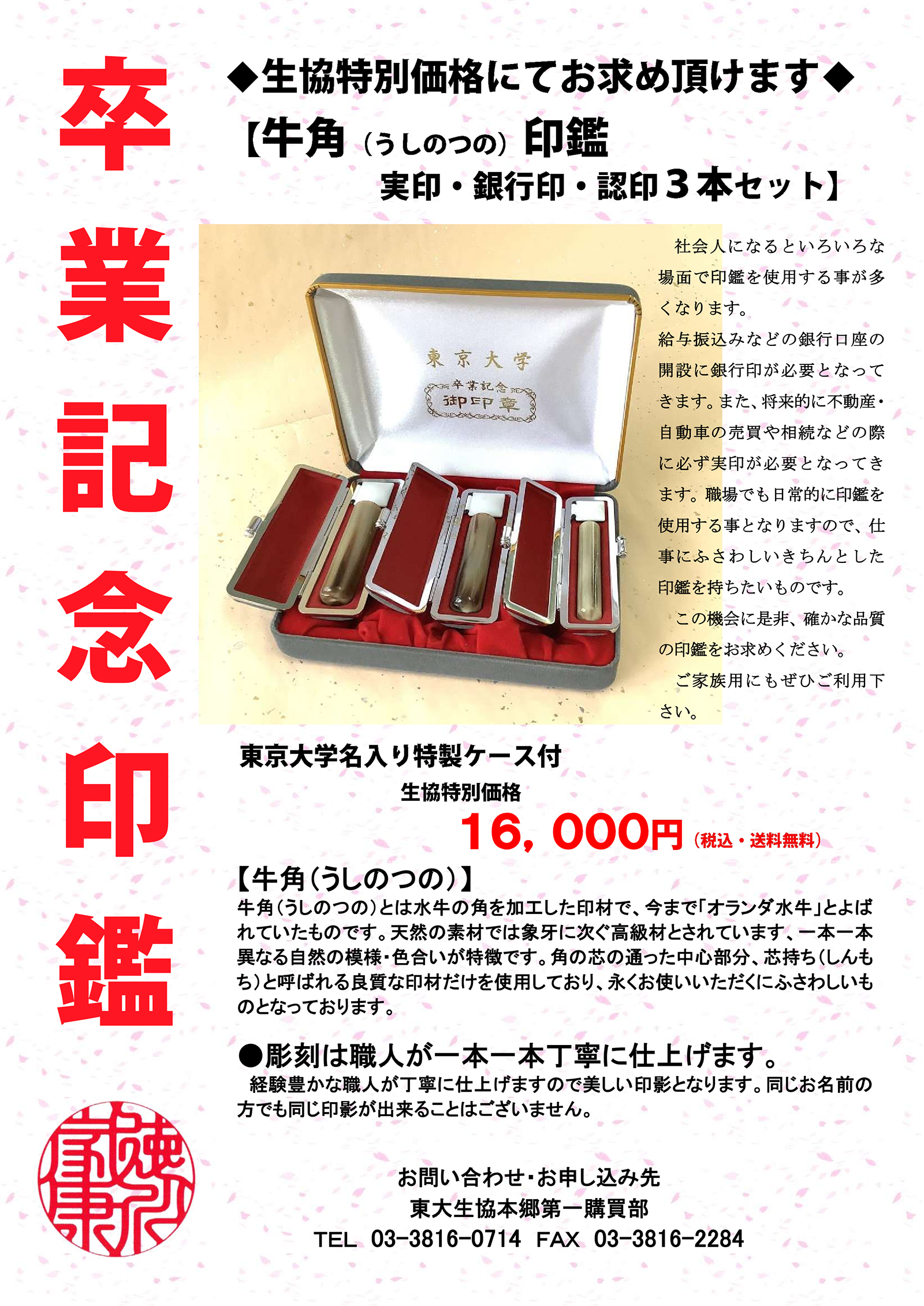 - 卒業記念印鑑牛角3本セット(実印・銀行印・認印) …特別組価 20,000円(税込)