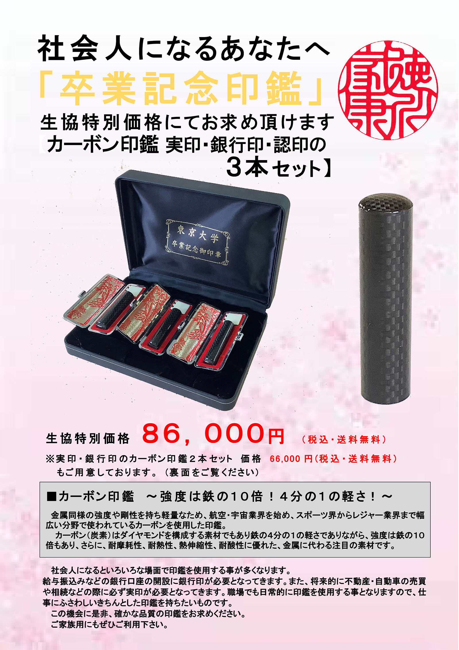 - 卒業記念印鑑チタン3本セット(実印・銀行印・認印) …特別組価 70,000円(税込)