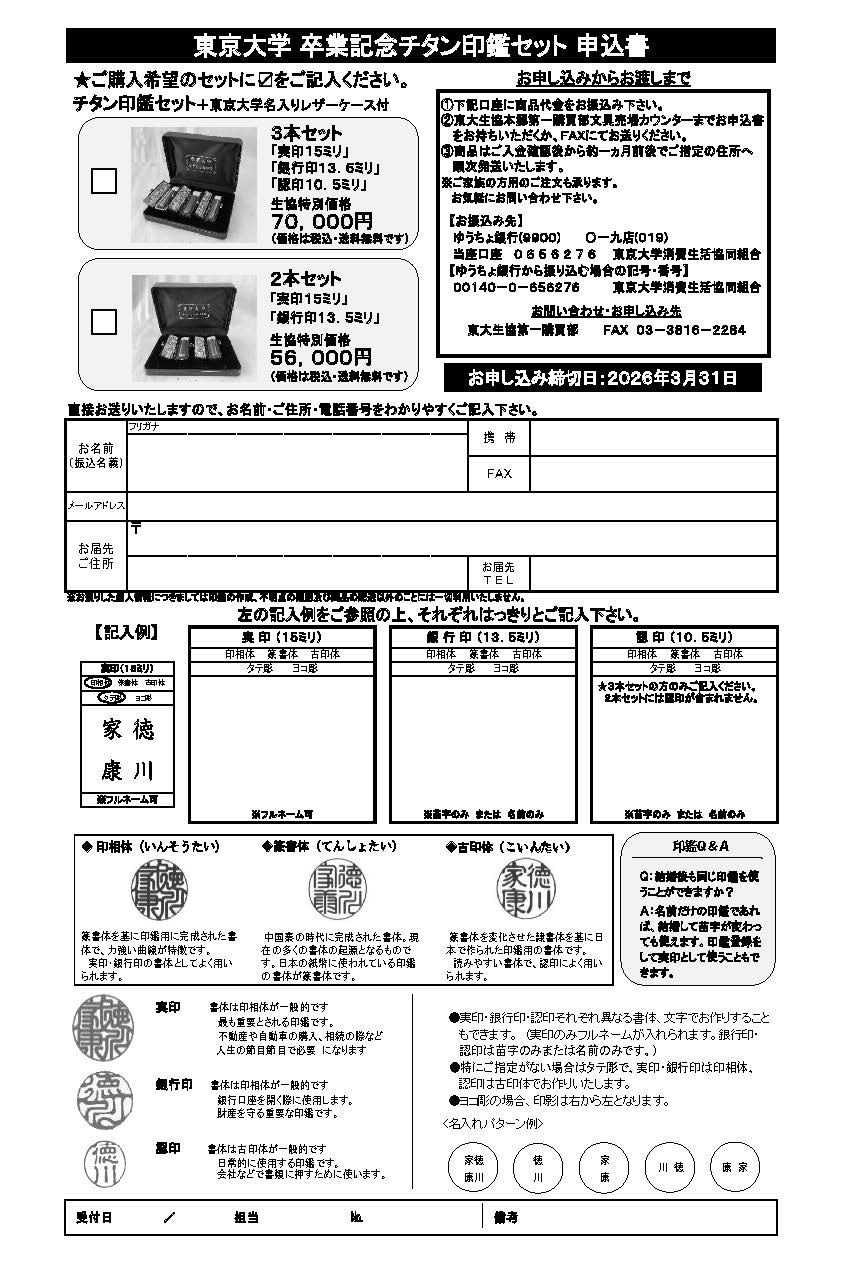- 卒業記念印鑑チタン2本セット(実印・銀行印) …特別組価 56,000円(税込)