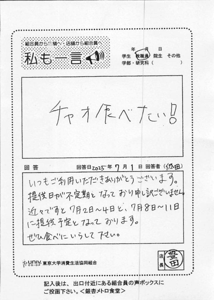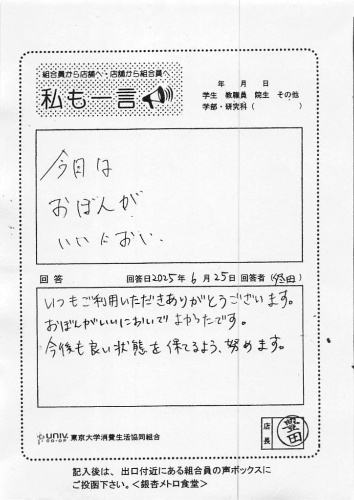 この度は、メトロ食堂のショーウインドウのイラストにつきまして、お褒めの言葉をいただきありがとうございました。イラストを描いた本人にも伝えたところ、大変よろこんでおりました。わたくしどもの仕事をしていく上での励みにもなります。
