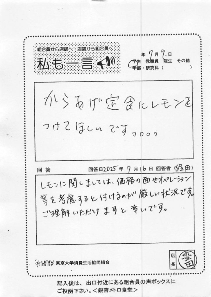 からあげ定食とメトロラーメンが消えた理由を・・・