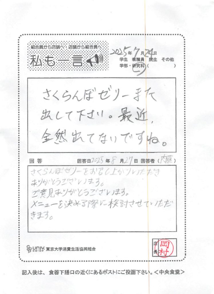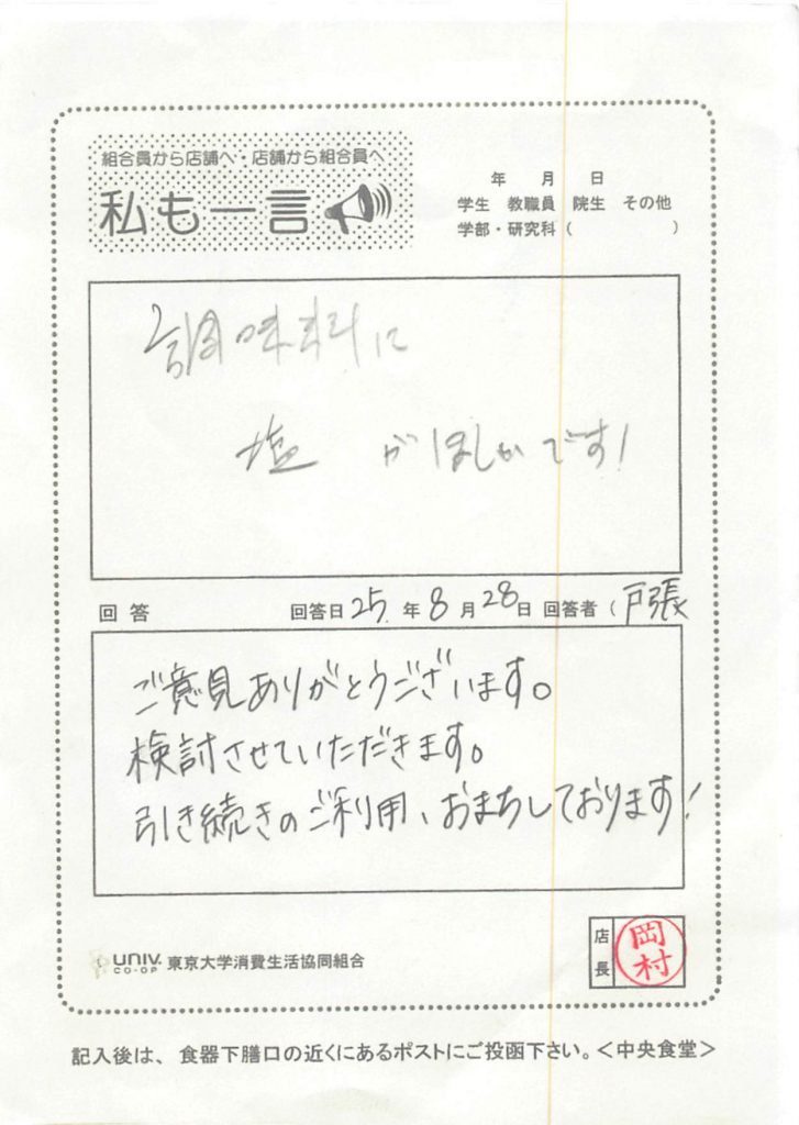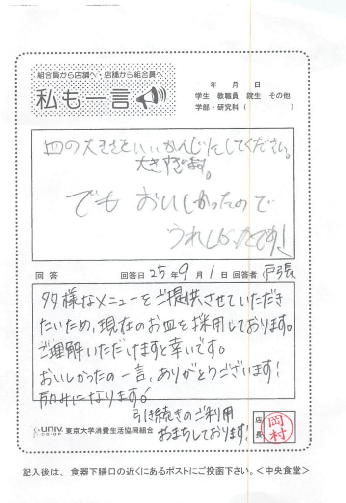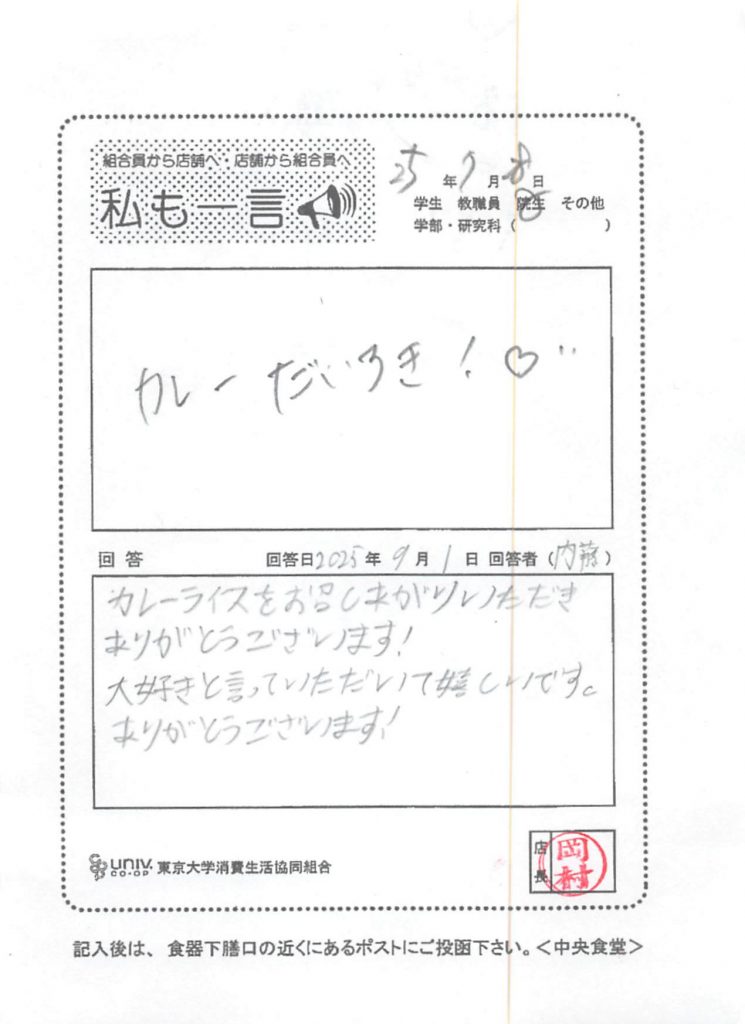 ひとことカード集 中央食堂