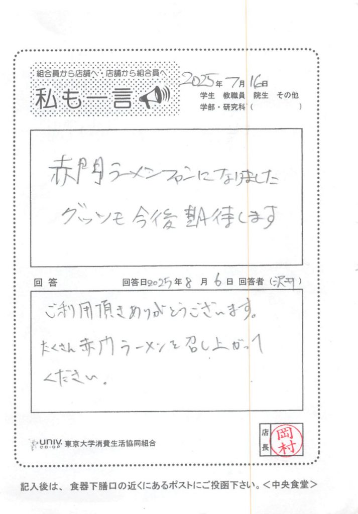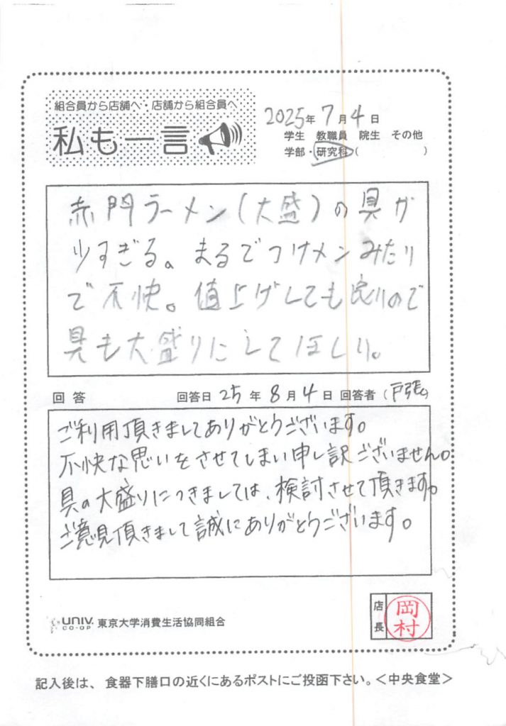 赤門ラーメン(大盛)の具が少なすぎる・・・
