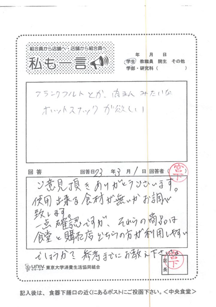 生協アプリの営業時間の欄が非常に見にくくなりました(スライドしないと見れないのが不便ですし、スライドやボタンの反応が悪いです)。元の一覧が見れる形式に戻していただけるとありがたいです。ご検討よろしくお願いします。