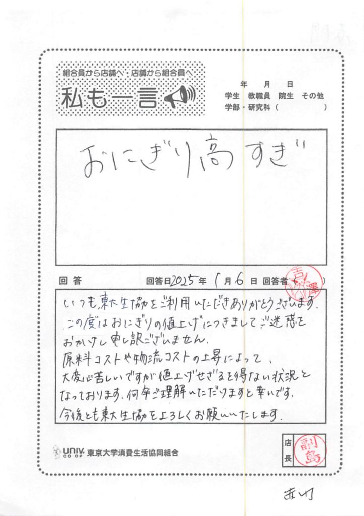 東大生協について