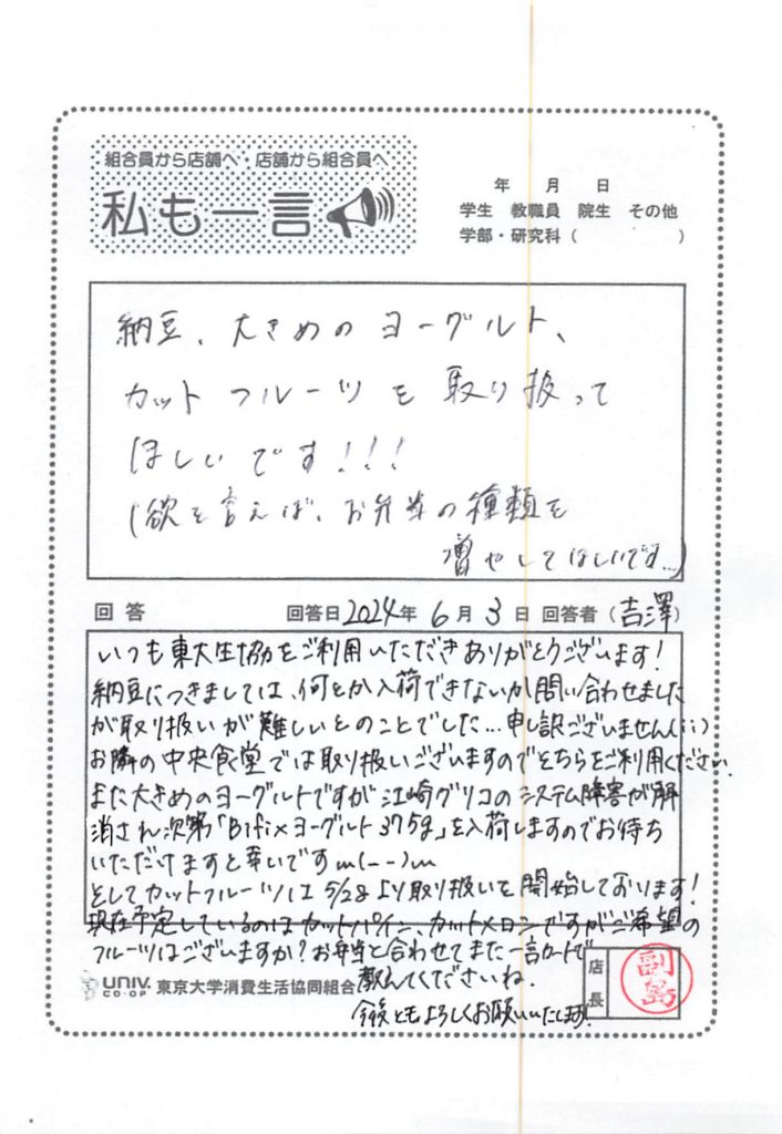 納豆、大きめのヨーグルト、カットフルーツを・・・