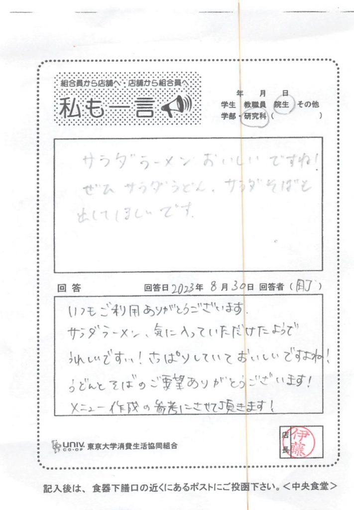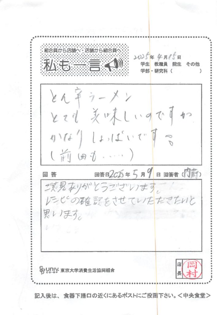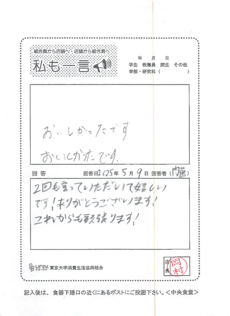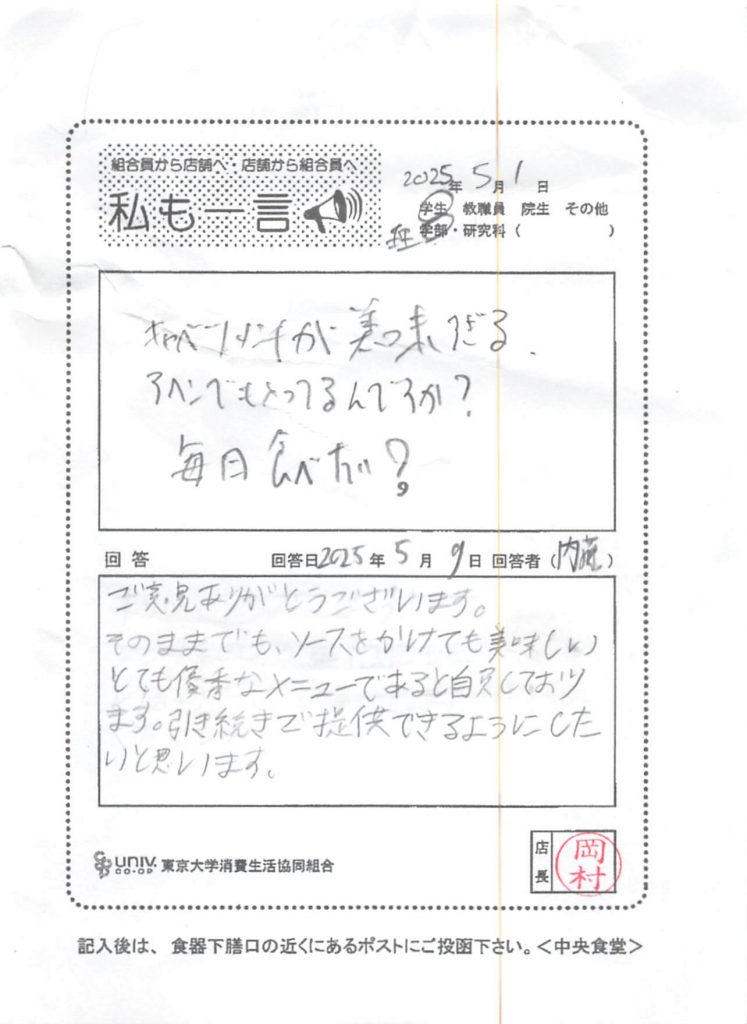 私は高血圧で厳しく塩分を制限されています。ハラル・ヴィーガンメニューなどと同様に、食塩不使用メニューも開発して欲しいです(そしてそれが食塩不使用だと分かるようにしてほしい)。ソースなど調味料が必要な人は後からかけられるようにしてもらえれば、みんなが食べられるメニューになるとも思います。