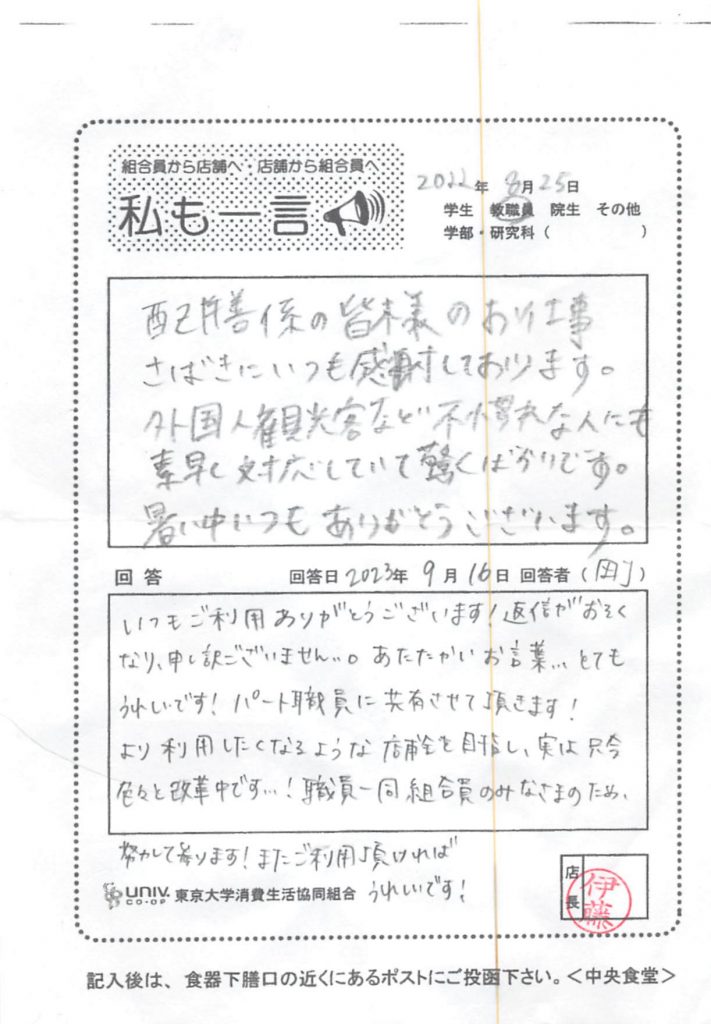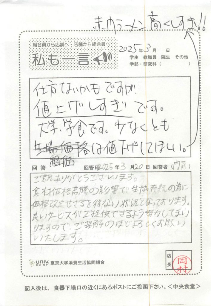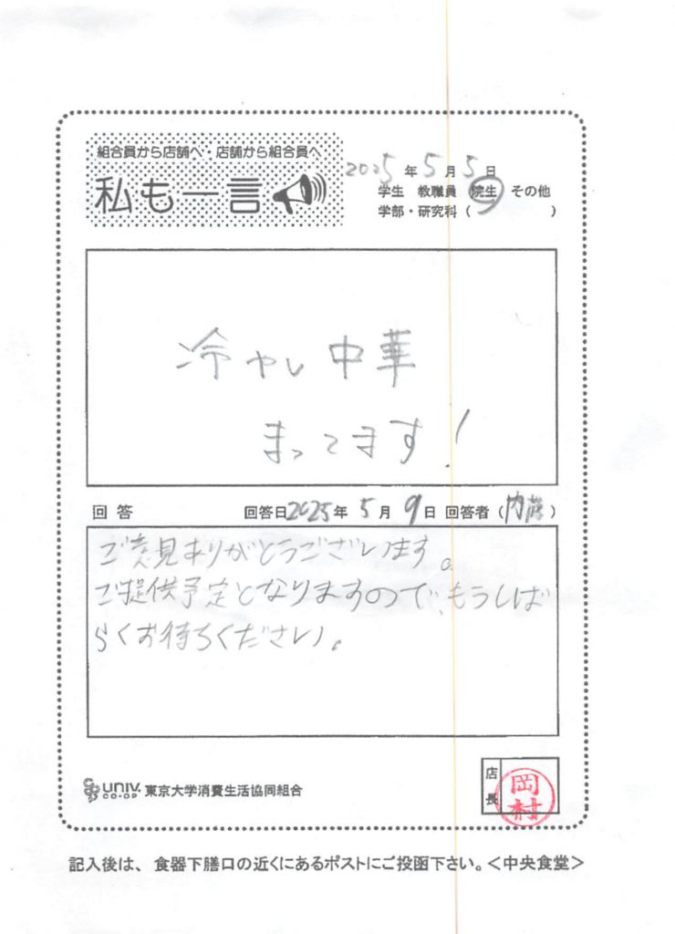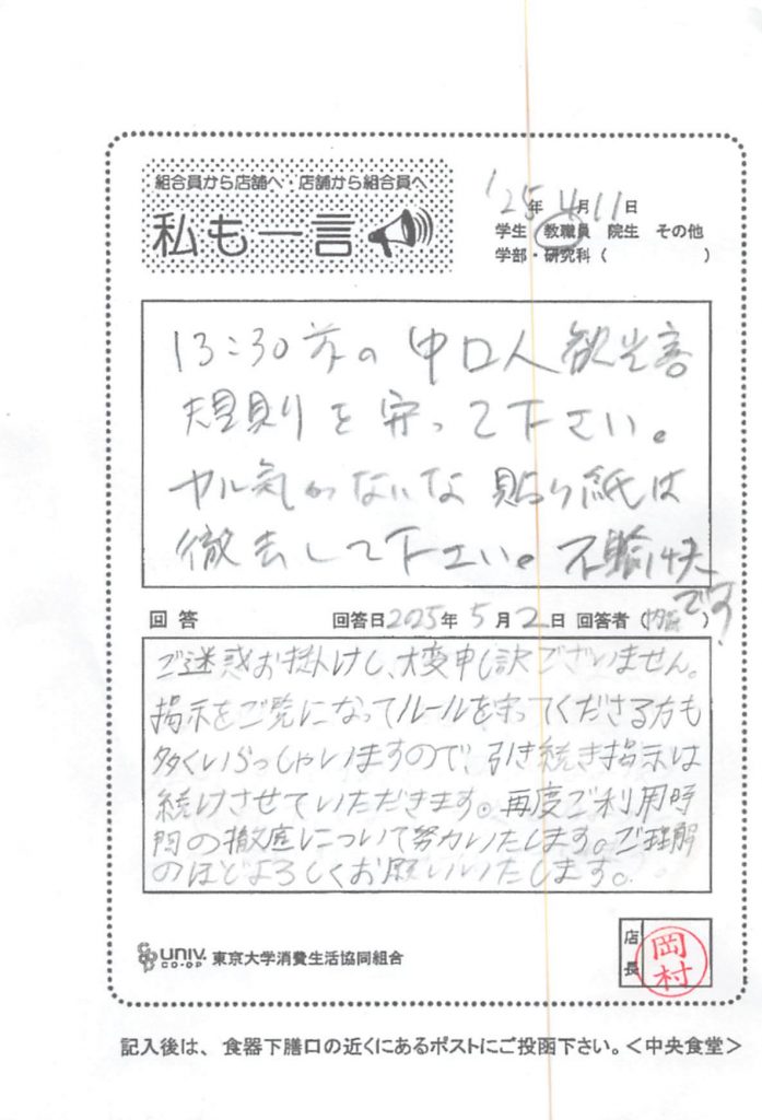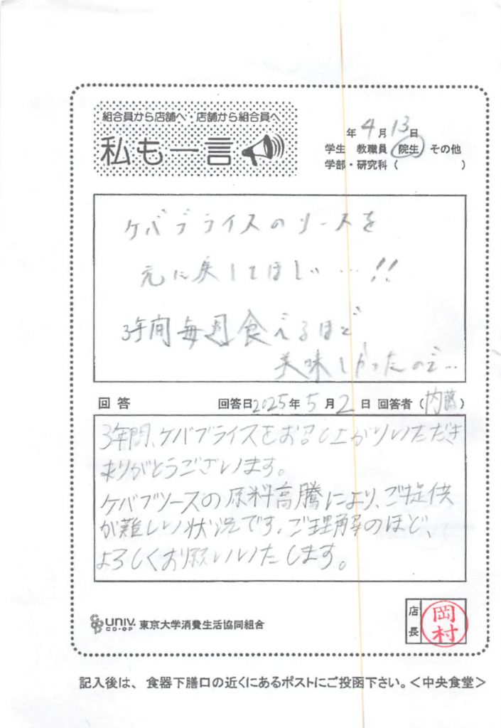 私は高血圧で厳しく塩分を制限されています。ハラル・ヴィーガンメニューなどと同様に、食塩不使用メニューも開発して欲しいです(そしてそれが食塩不使用だと分かるようにしてほしい)。ソースなど調味料が必要な人は後からかけられるようにしてもらえれば、みんなが食べられるメニューになるとも思います。