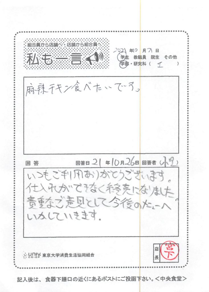 食堂で毎日ご飯を食べるのが楽しい・・・