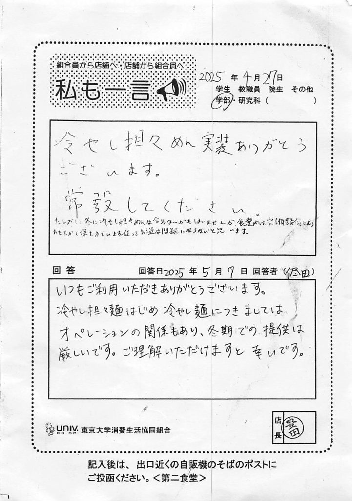 冷やし担々めん実装ありがとう・・・