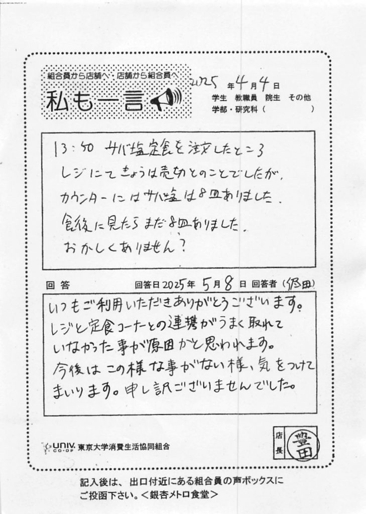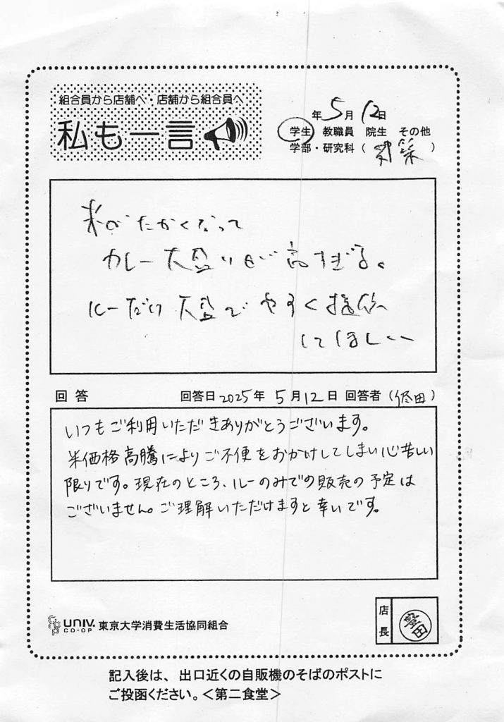 ひとことカード集 本郷食堂
