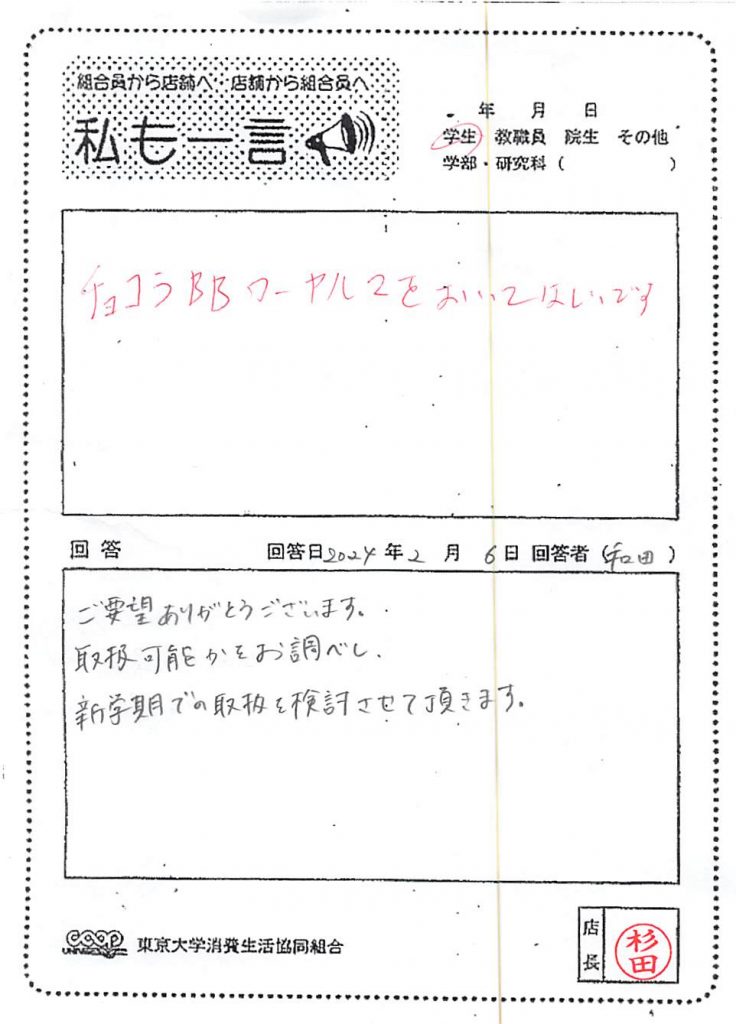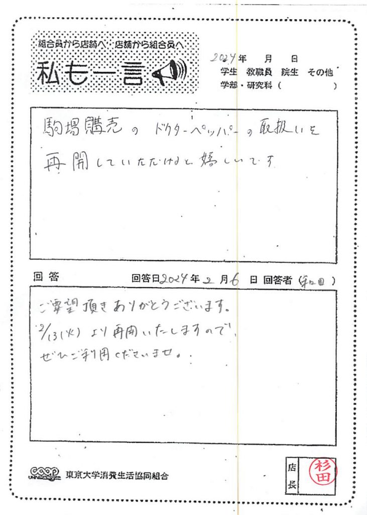 駒場購買のドクターペッパーの取り扱いを再開・・・