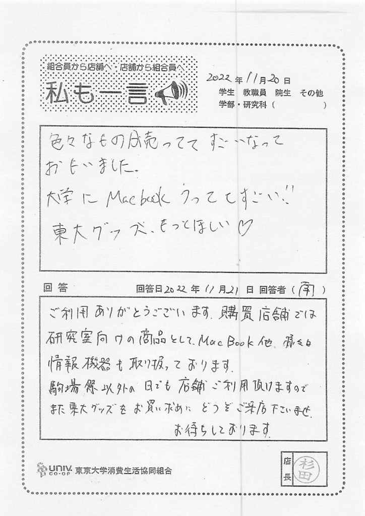 東大生協について