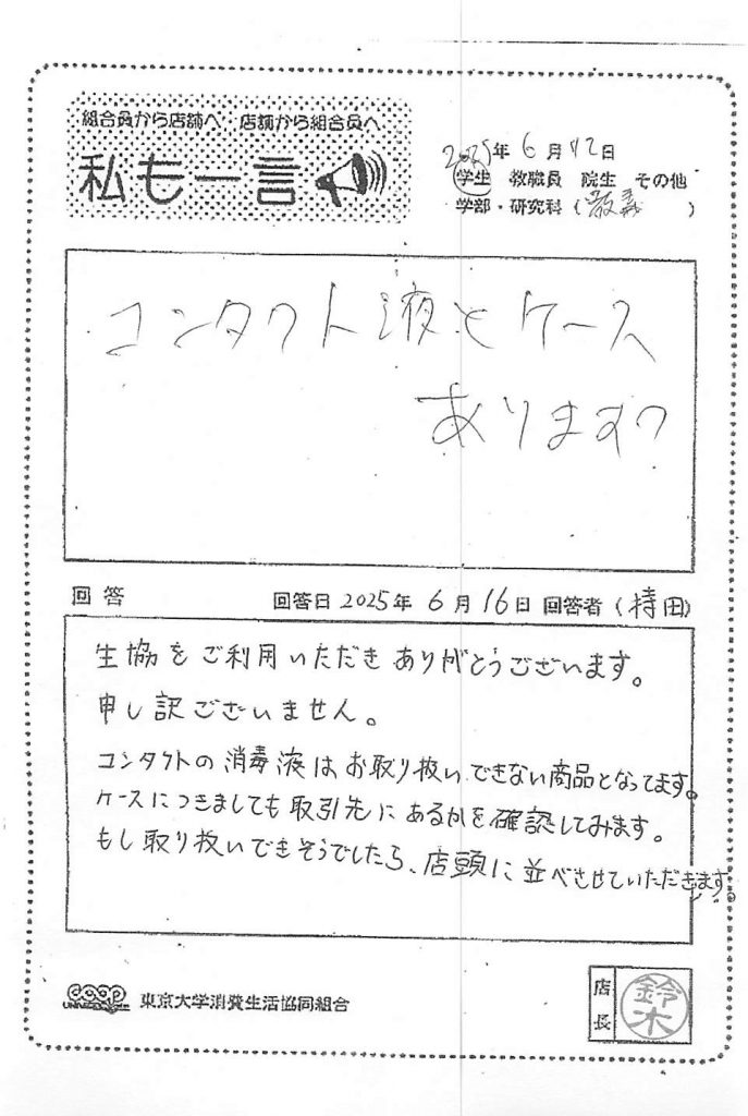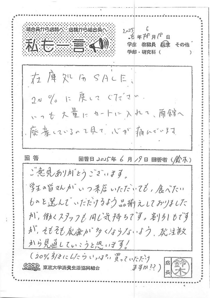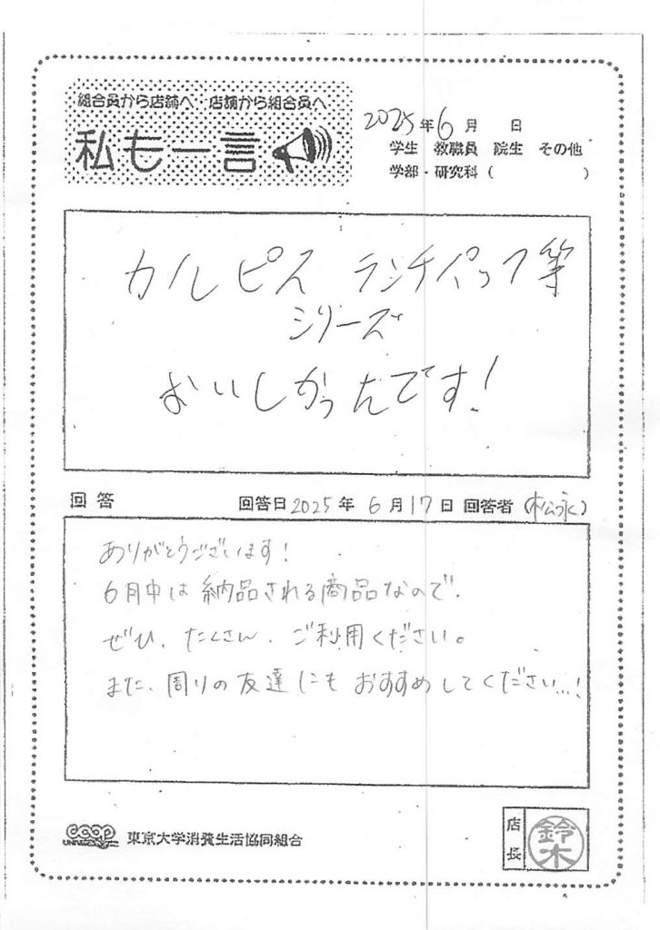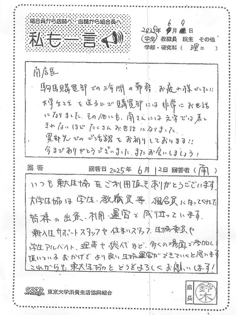 駒場購買部での三年間の勤務、お疲れさまでした・・・