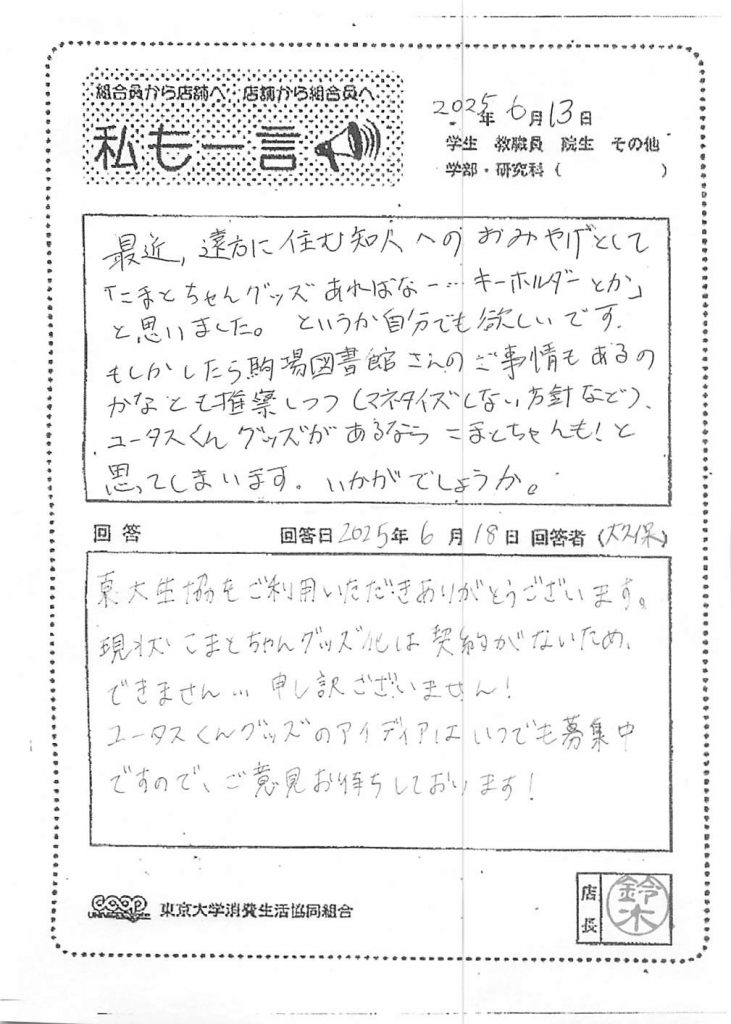 ユータスくんグッズがあるなら、こまちゃんも!・・・