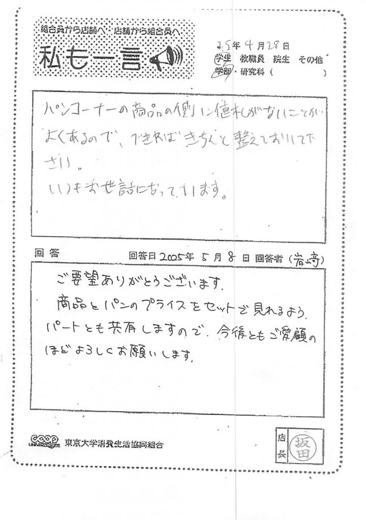 東大生協について