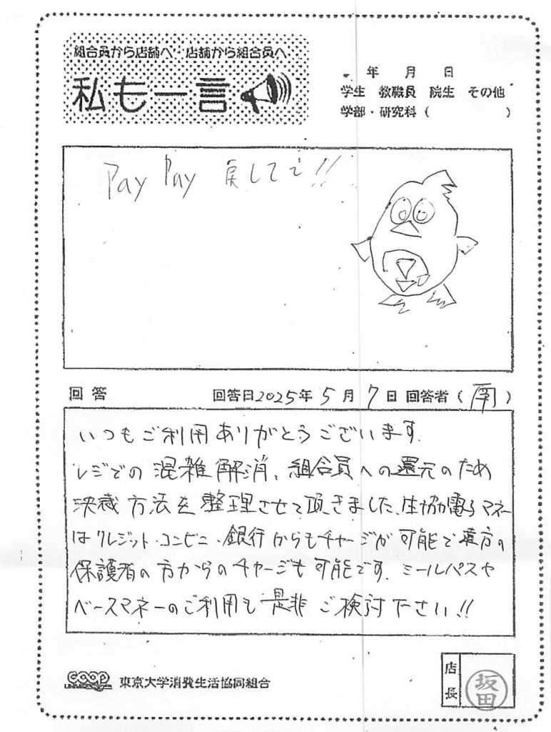 生協電子マネーじゃなくて・・・
