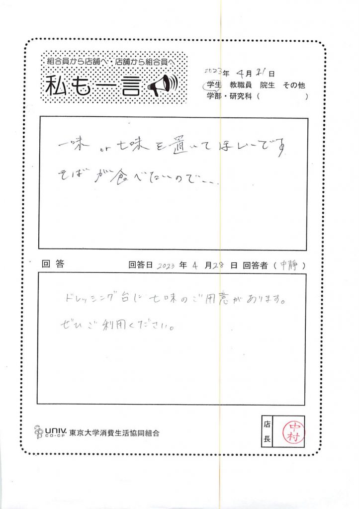 一味or七味を置いて・・・