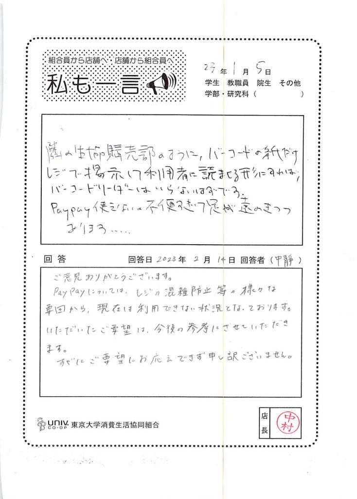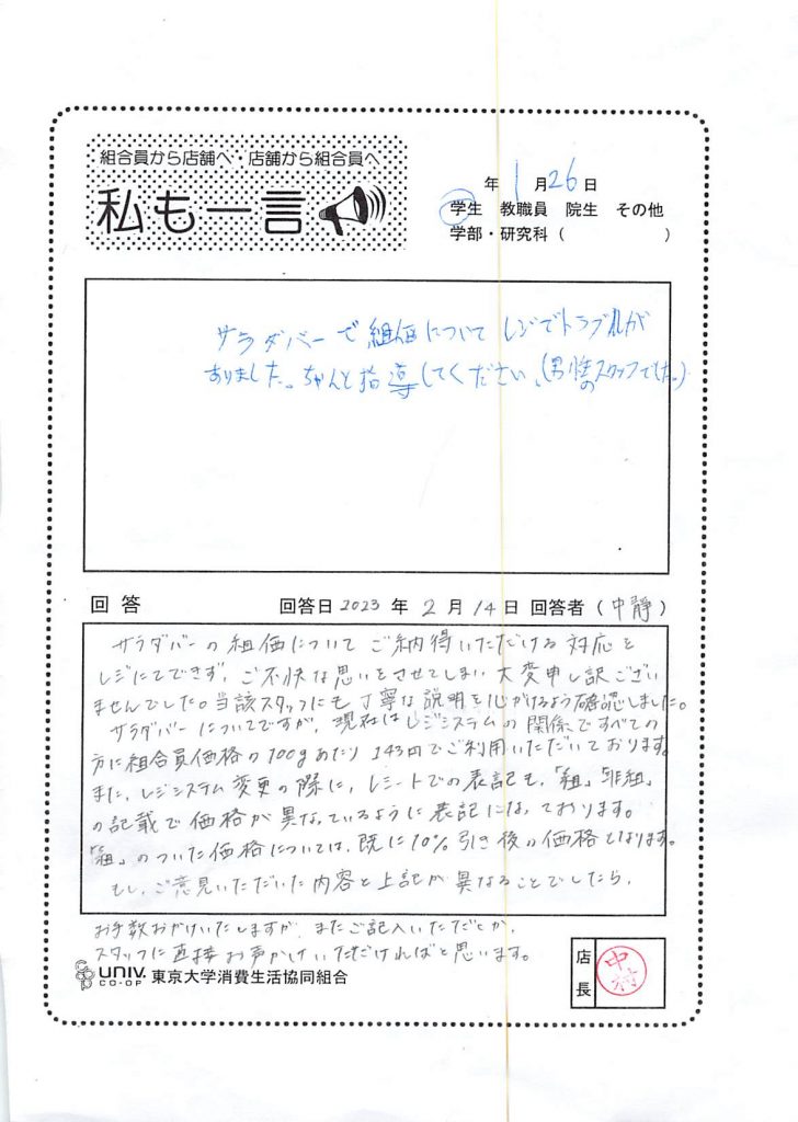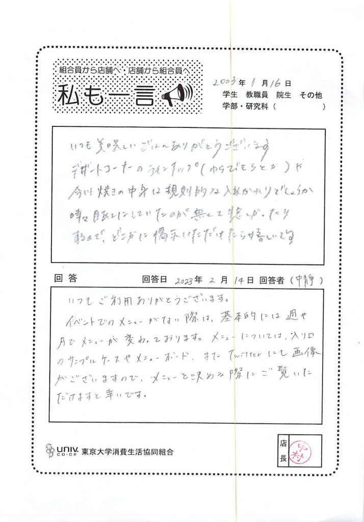 東大生協について