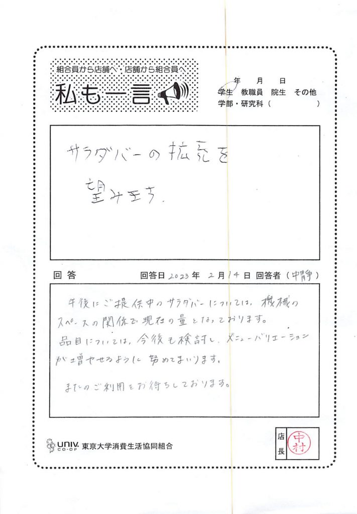 ひとことカード集 駒場食堂
