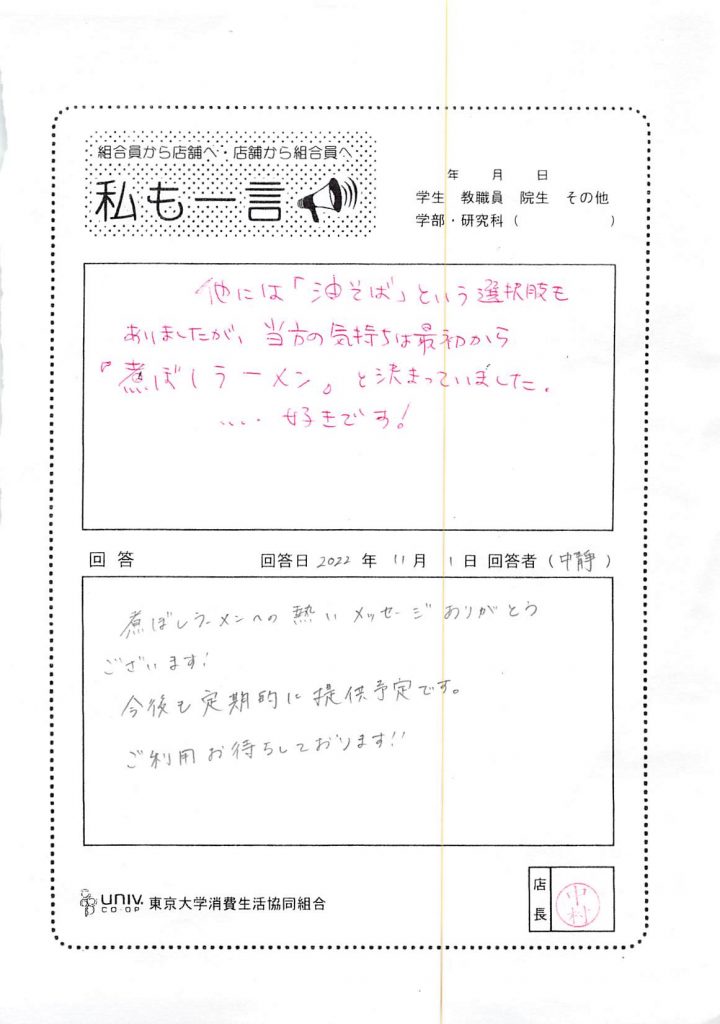 ひとことカード集 駒場食堂