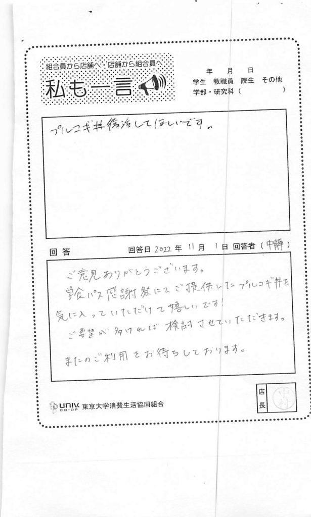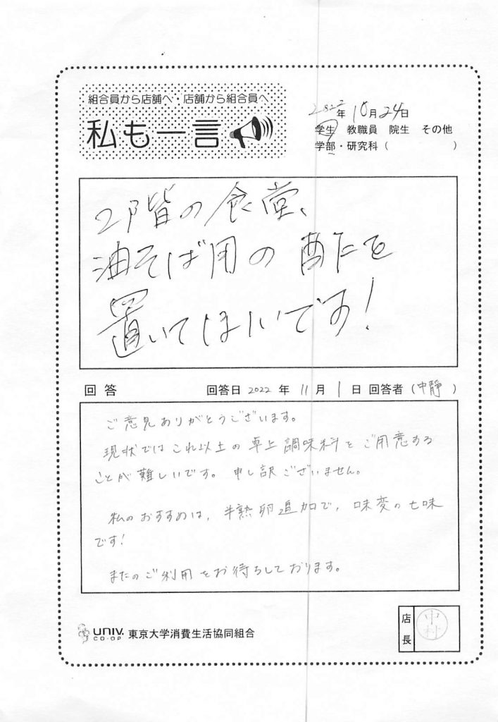 東大生協について