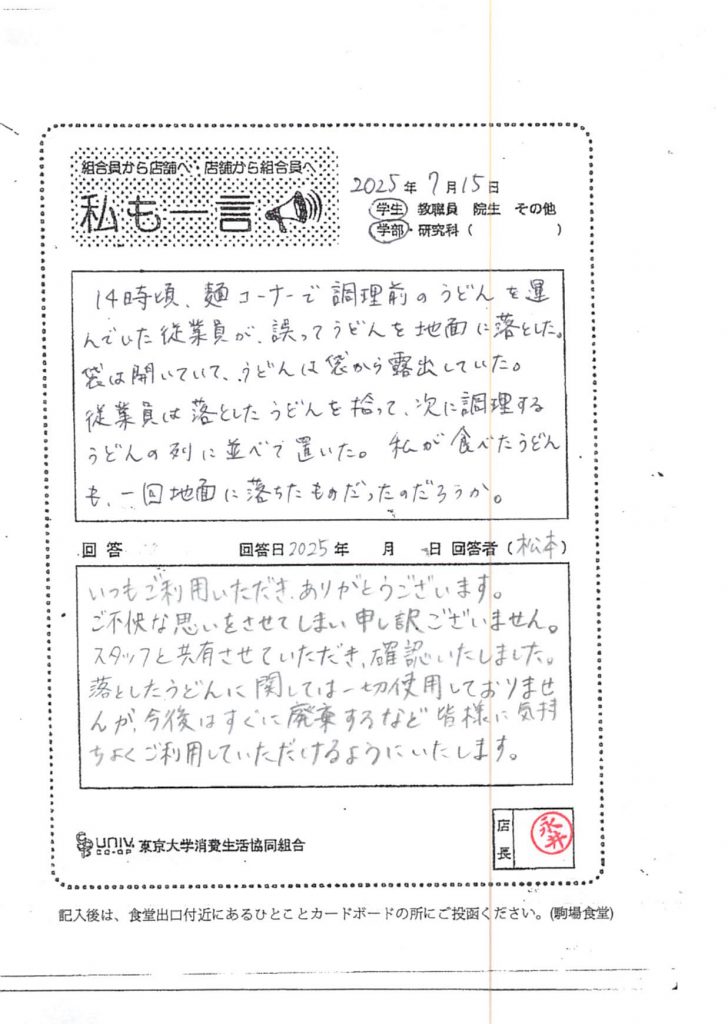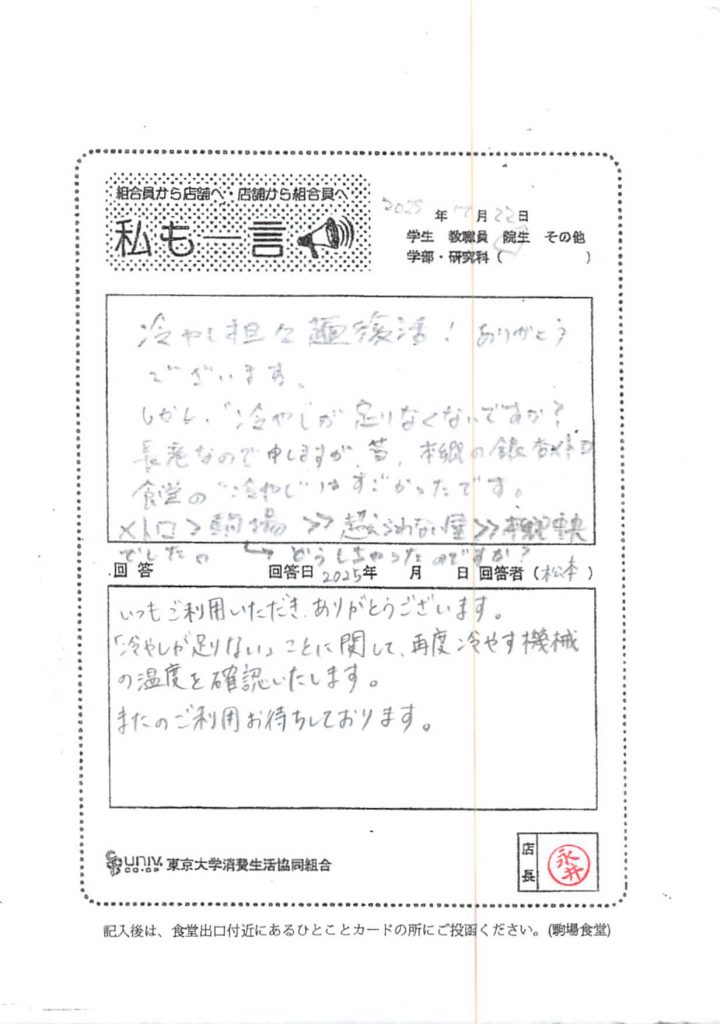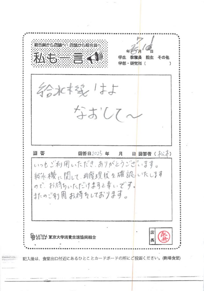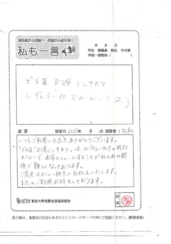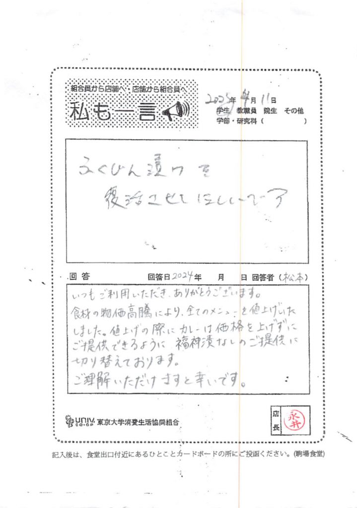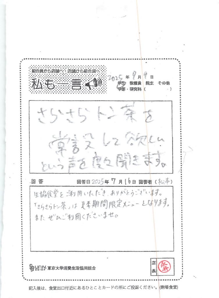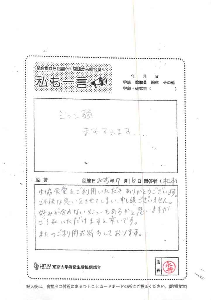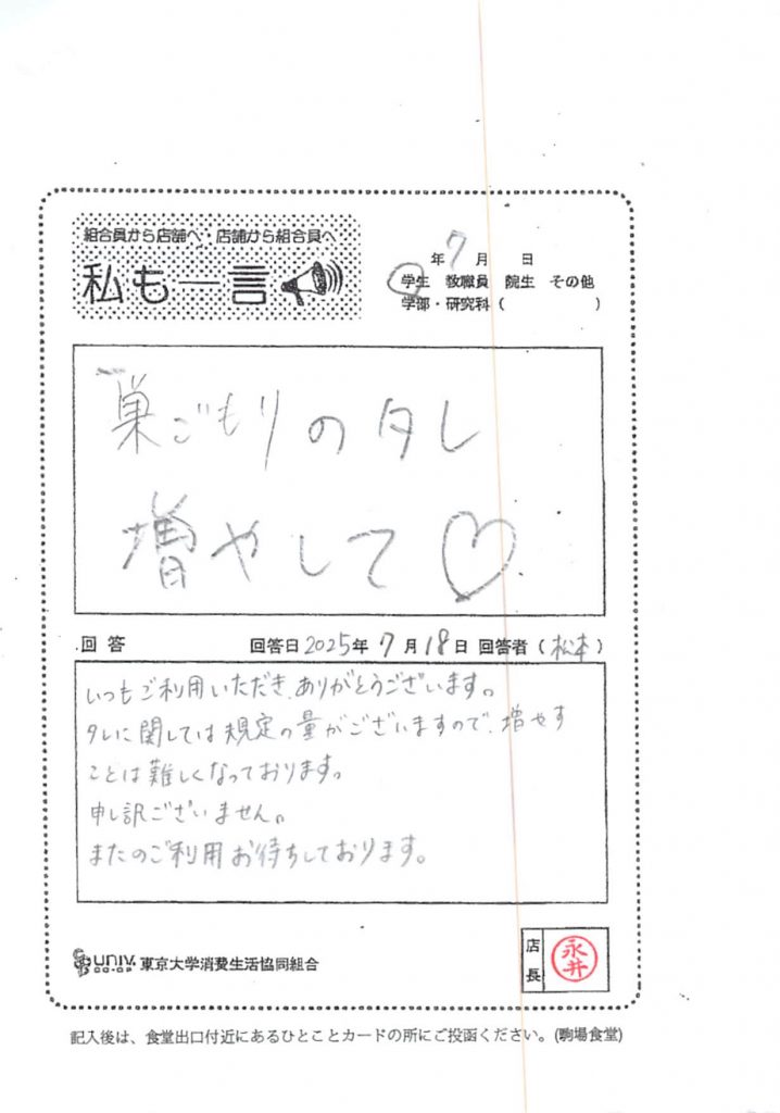 ひとことカード集 駒場食堂