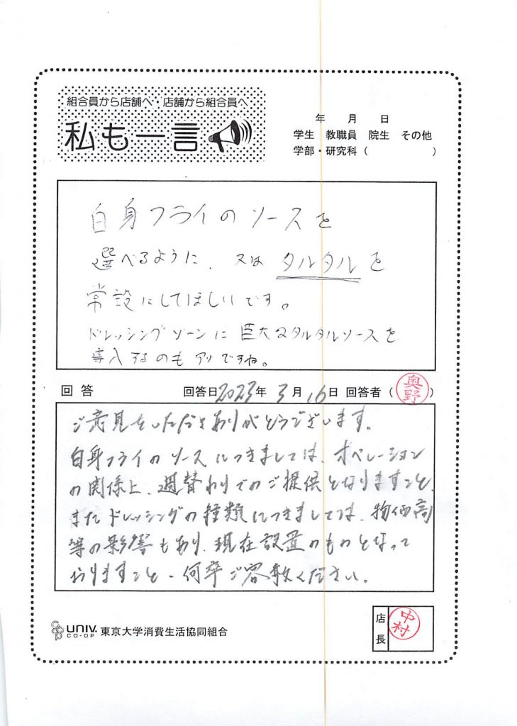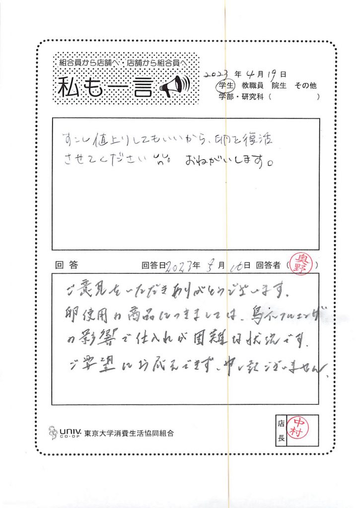 東大生協について