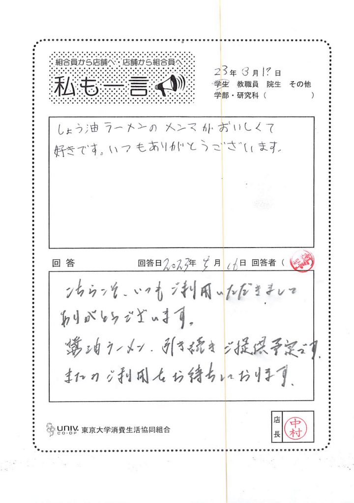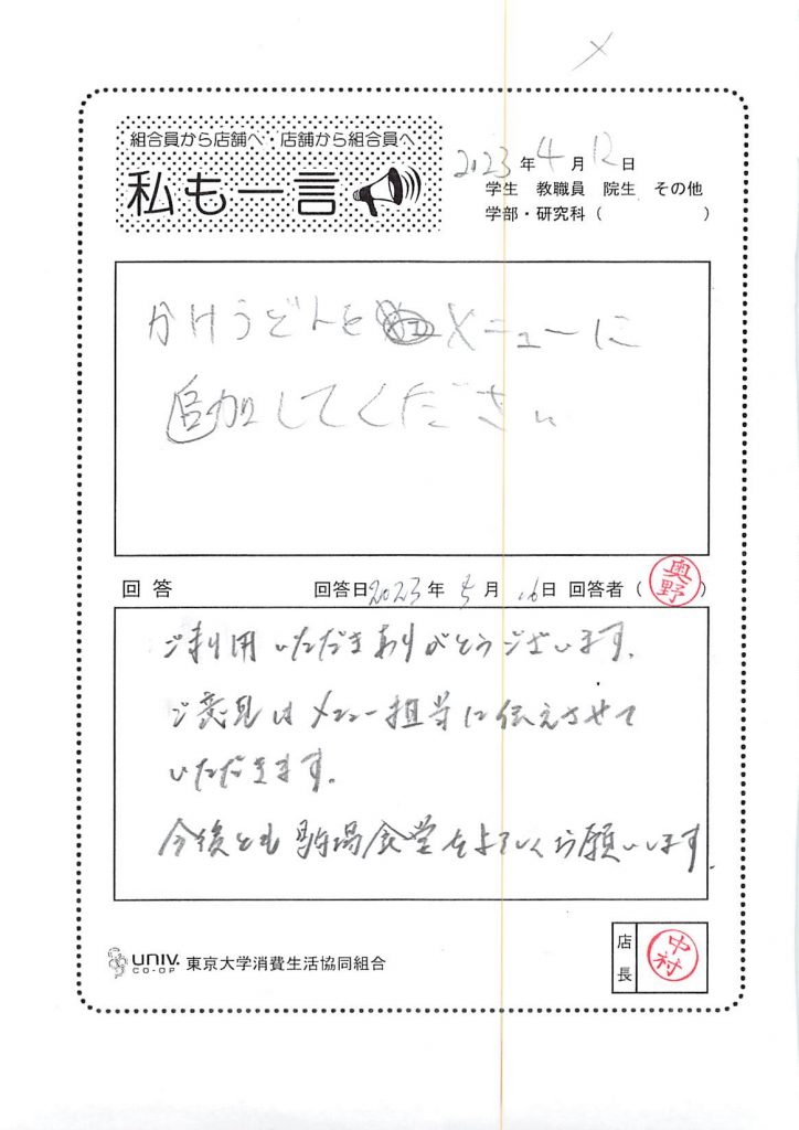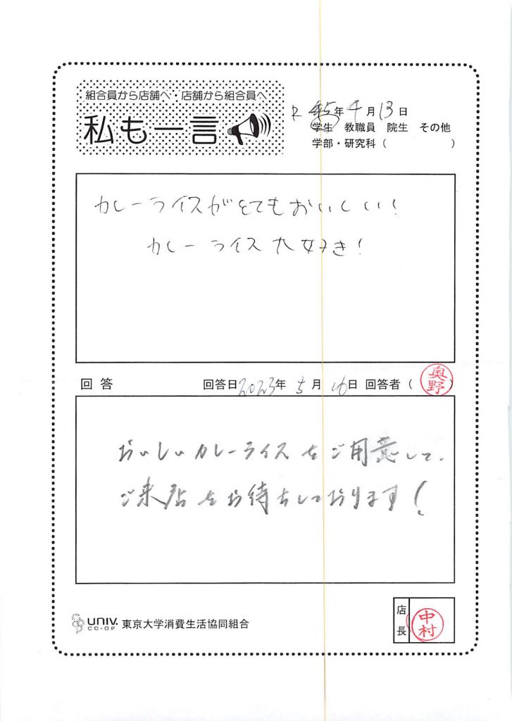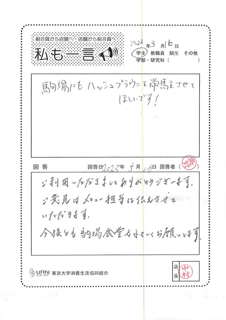 ひとことカード集 駒場食堂
