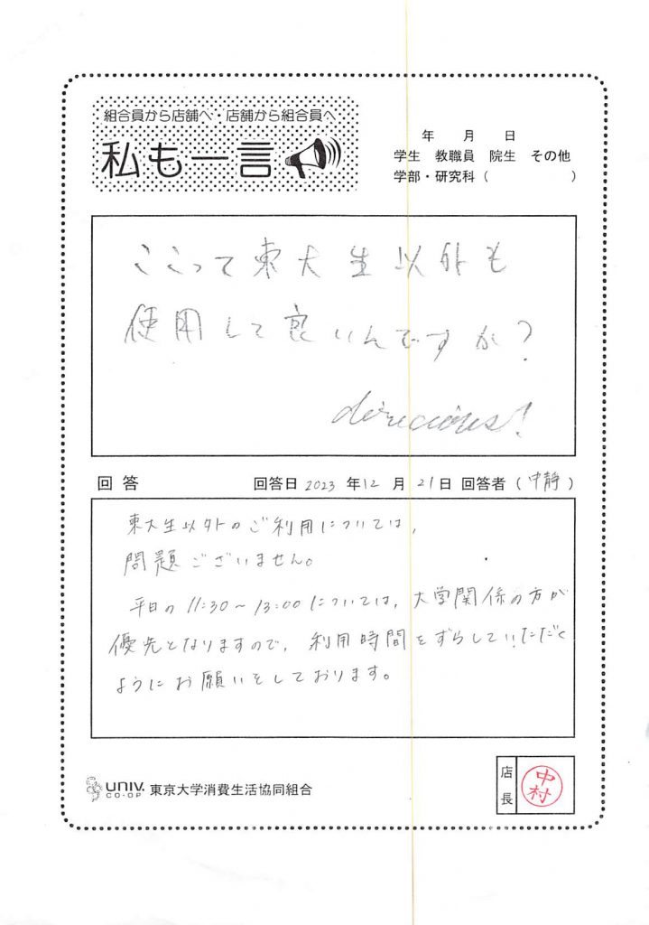 東大生協の