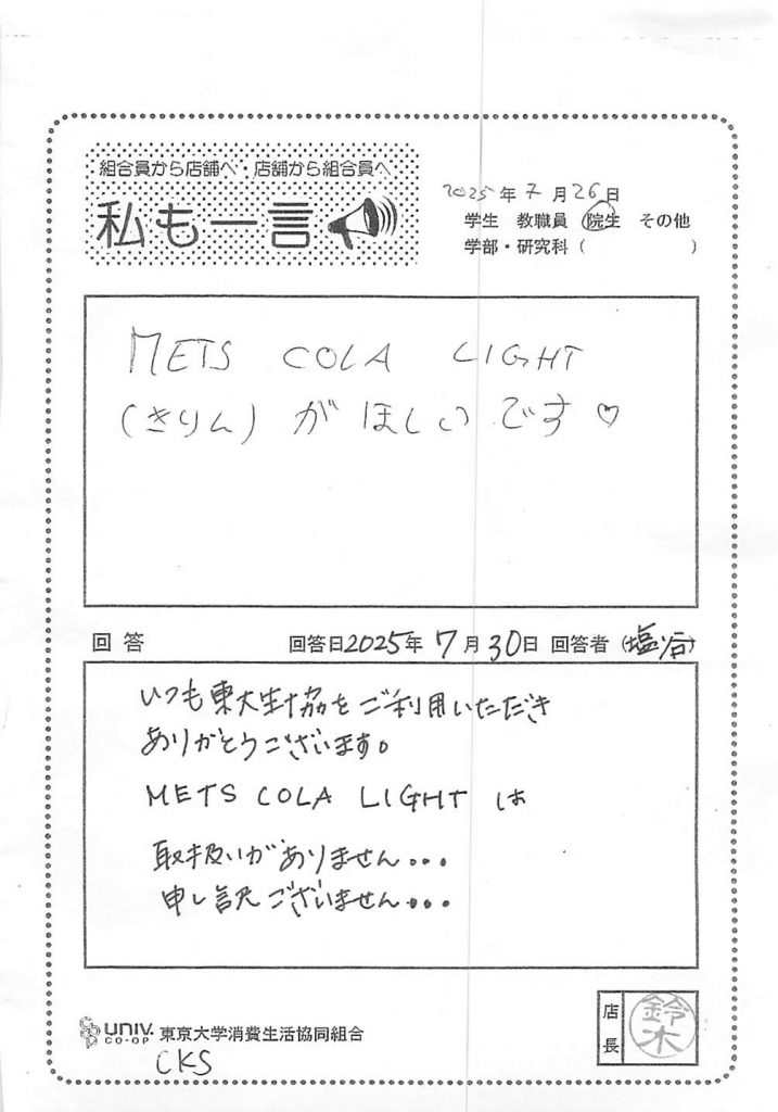 METS COLA LIGHTがほしい・・・