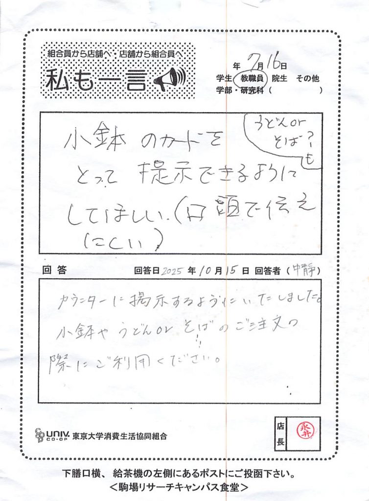 東大生協について