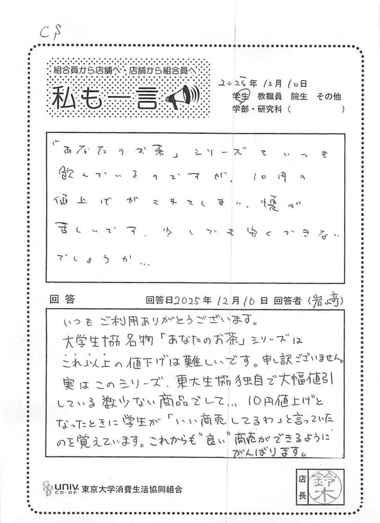 東大生協について